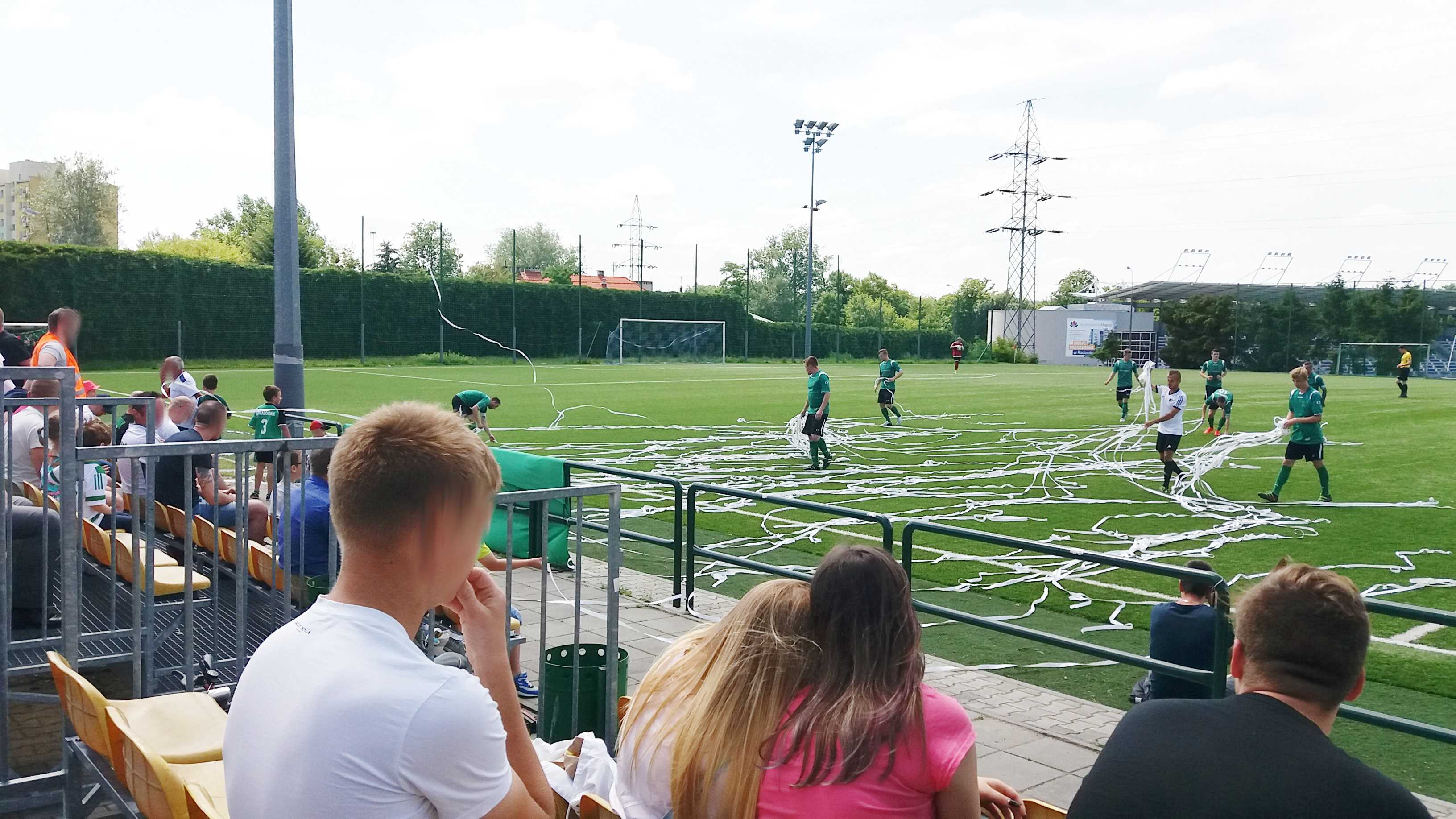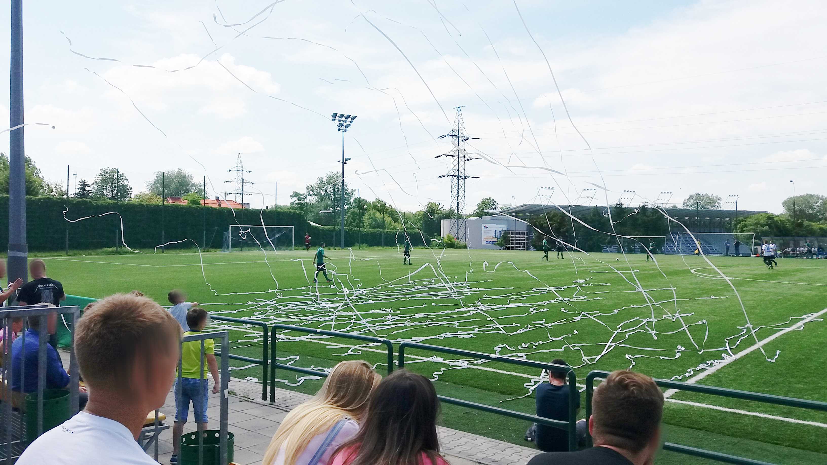 |  | | Piłkarze zbierają serpentyny z boiska | |