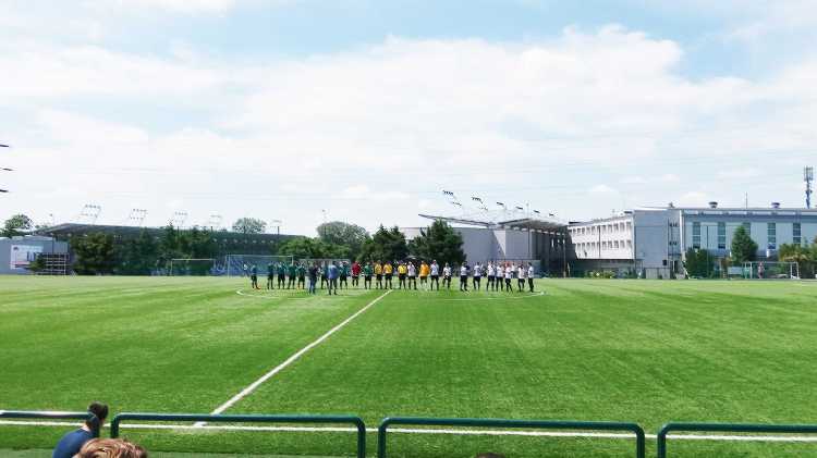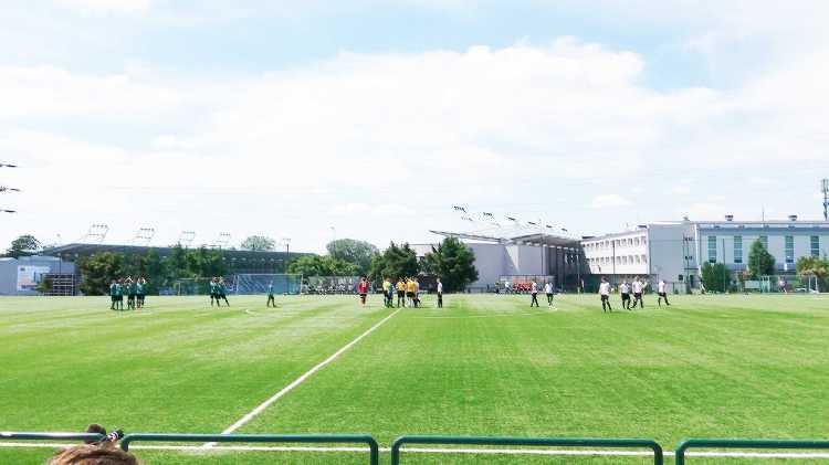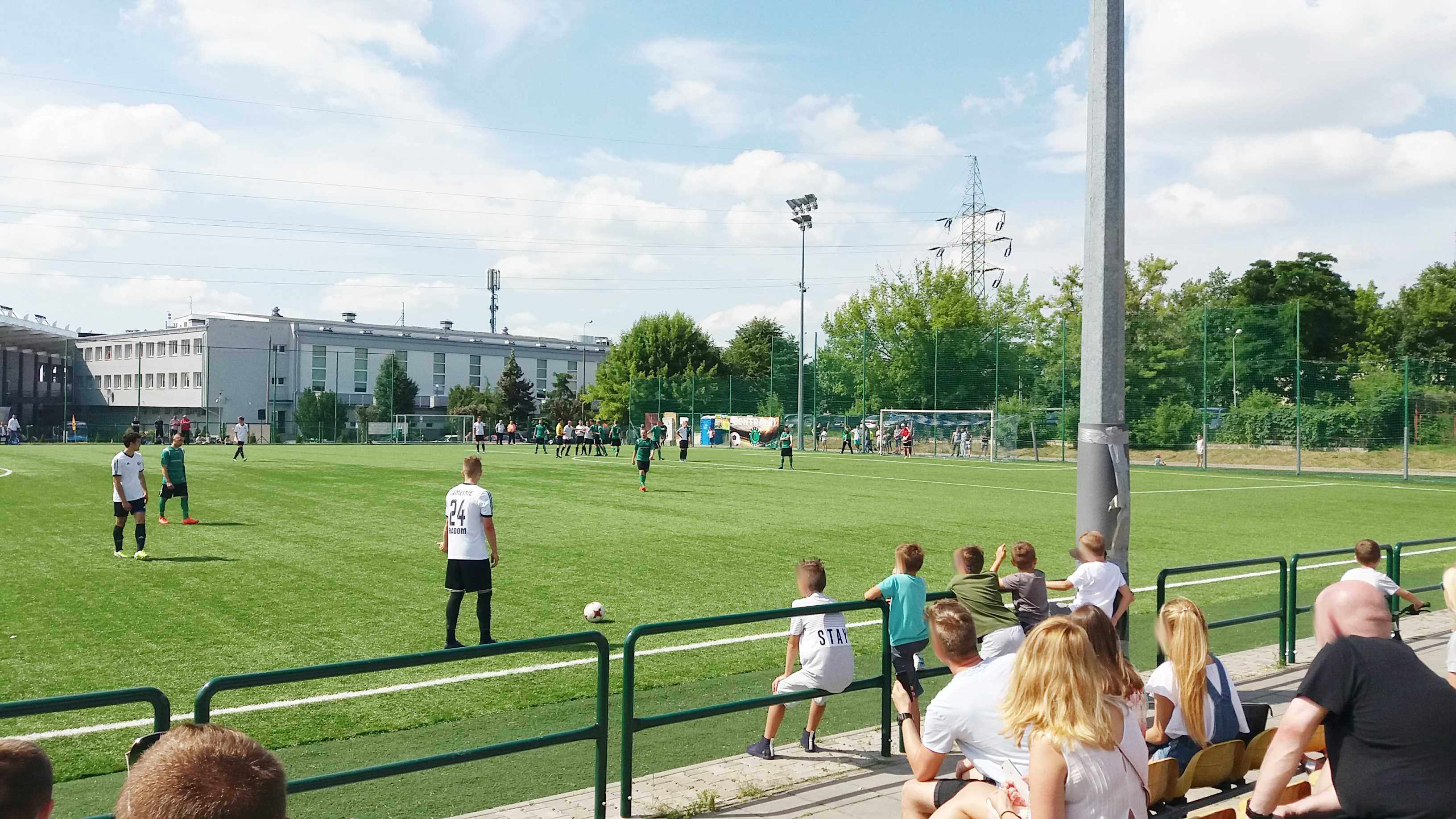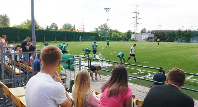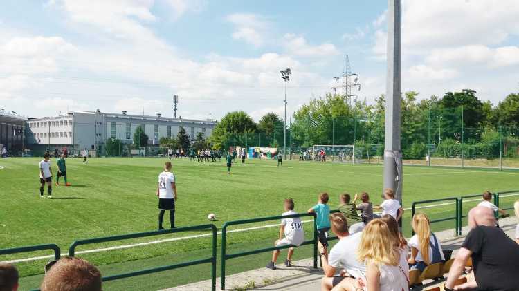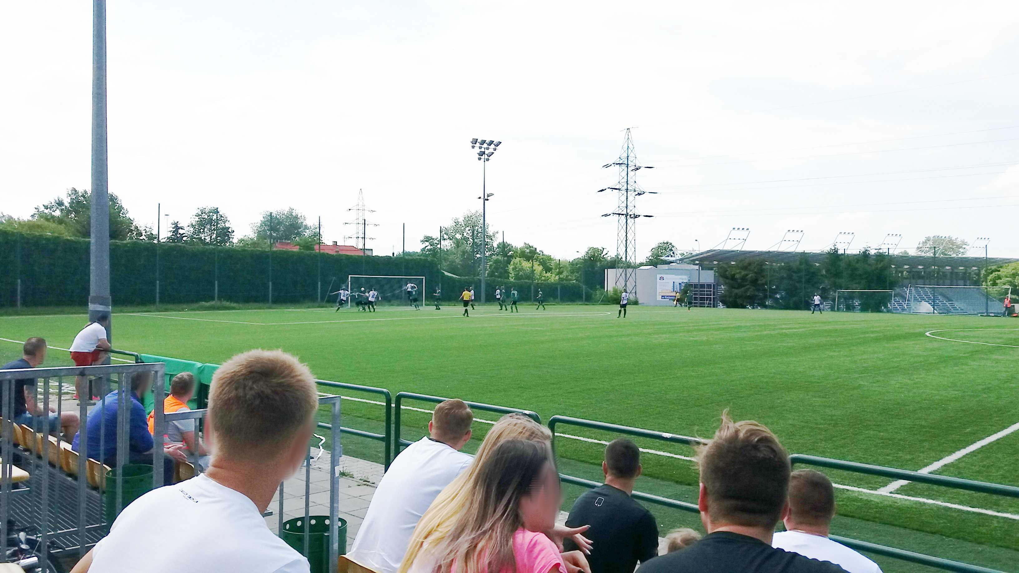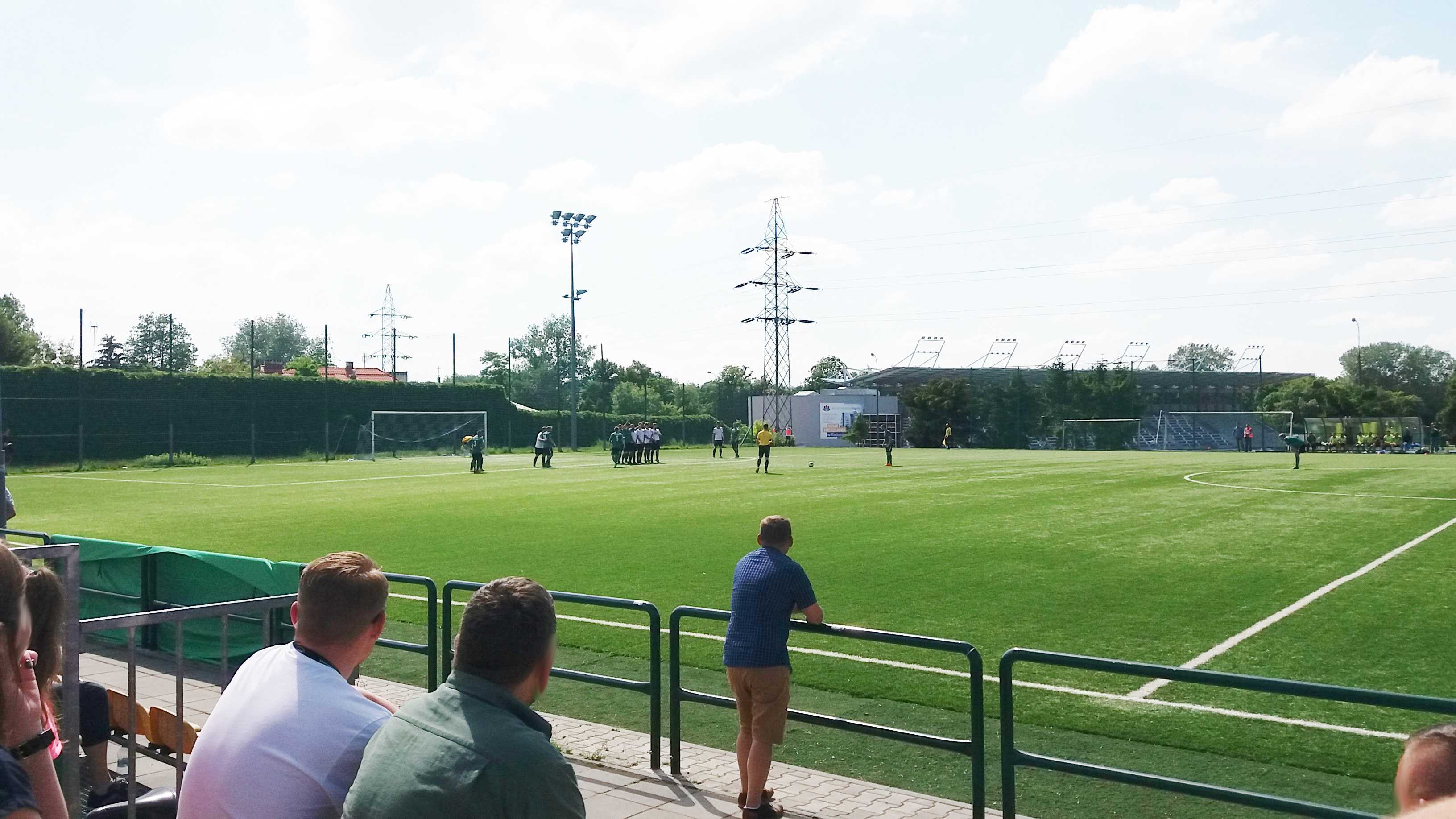 |  | | Rozgrzewka; w tle widać arenę dzisiejszego barażu o Nice 1. Ligę Polską | |