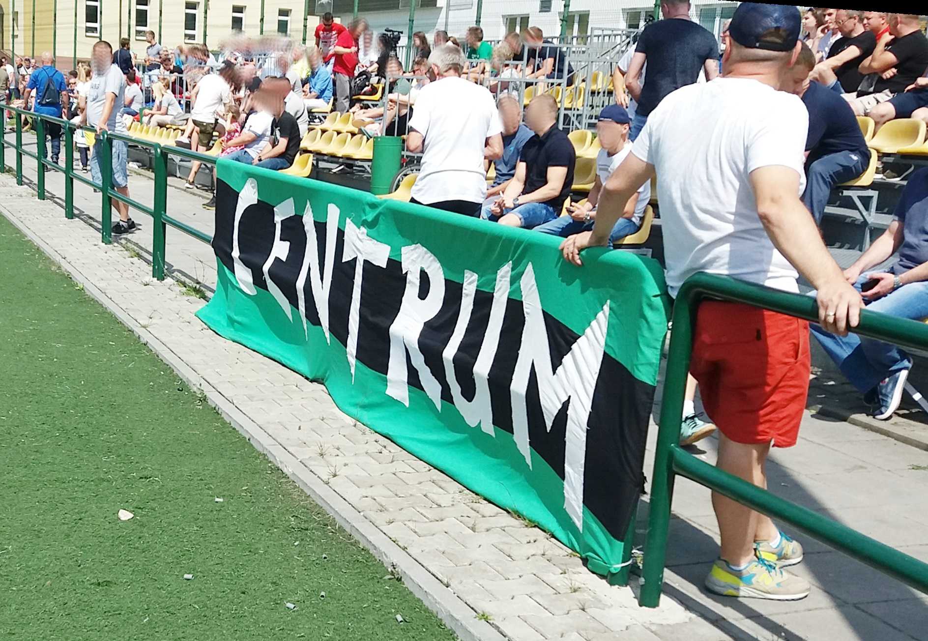 |  | | Flaga promująca klub Centrum - trochę materiał reklamowy, zawieszony na trytytkach | |