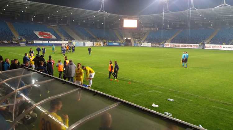 |  | | Już zapraszano kibiców na kolejny mecz, z Chełmianką. Nie wiem, czy widać cokolwiek na telebimie. | |