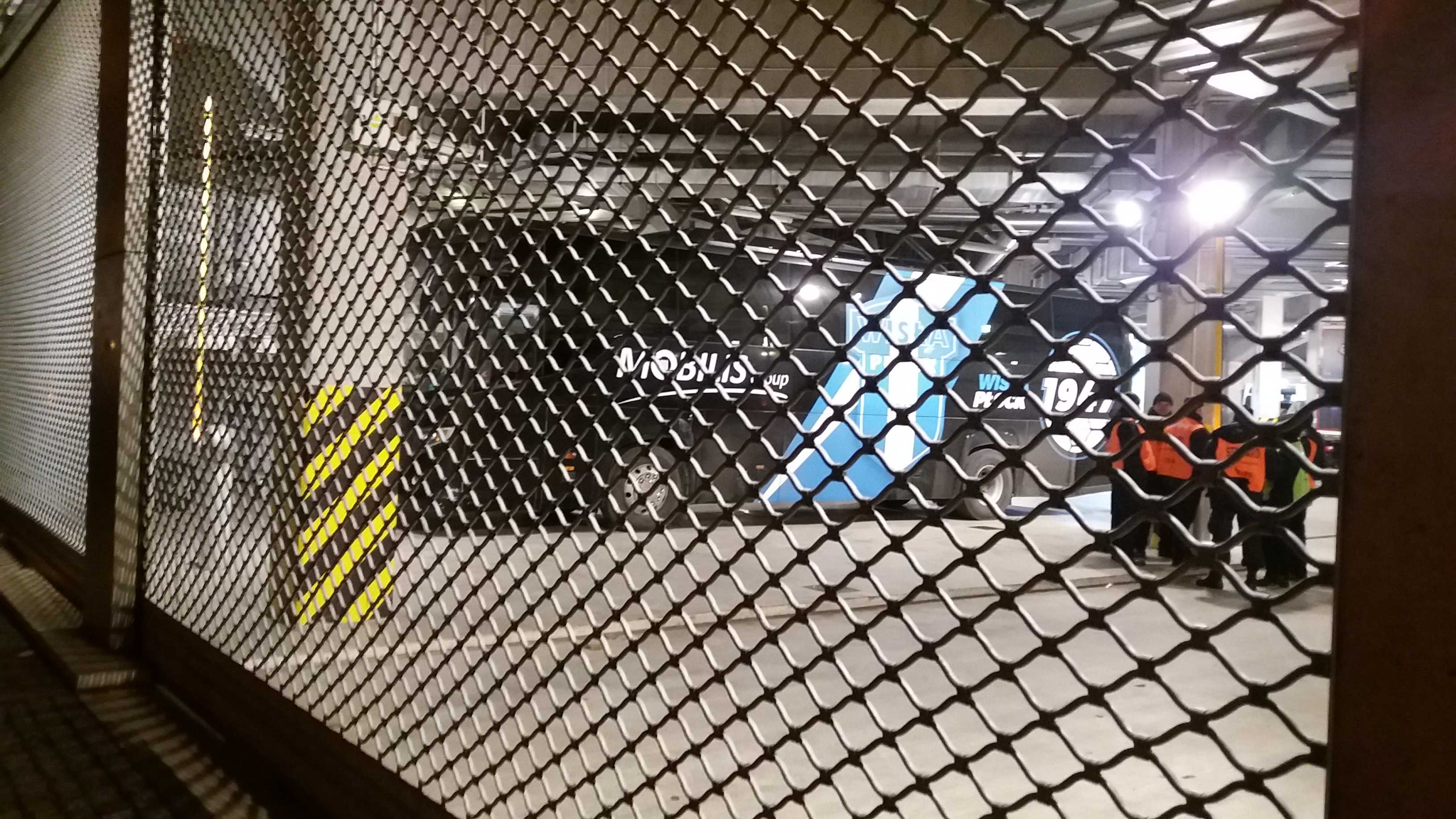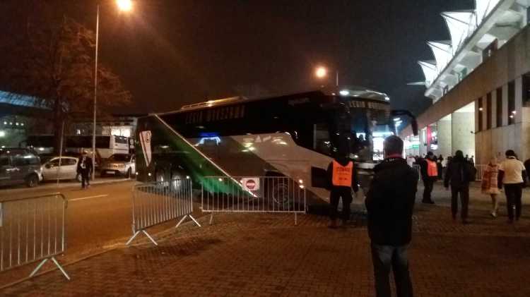 |  | | Autobus Legii wjeżdża na stadionowy parking | |