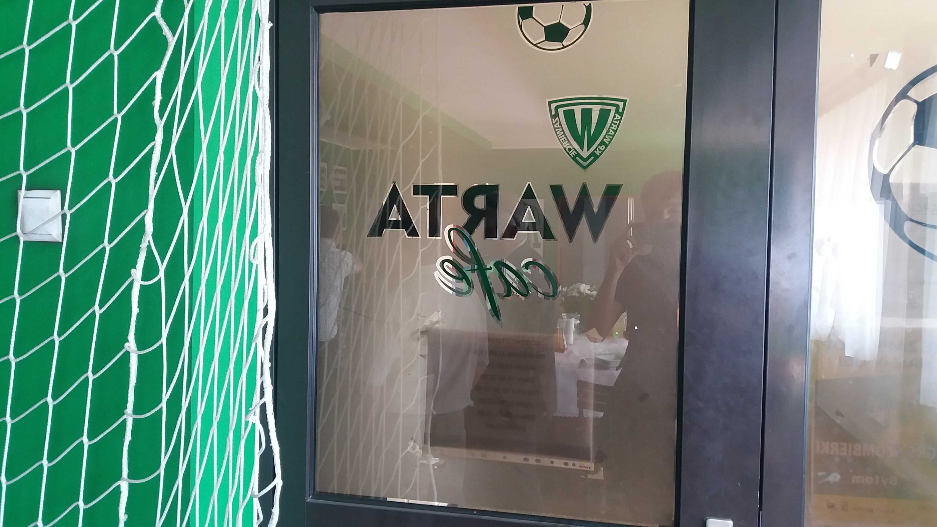 |  | | O, właśnie, Warta Cafe. W drzwiach odbija się m.in. stół z gotowym obiadem komunijnym i twarz Chomika. | |