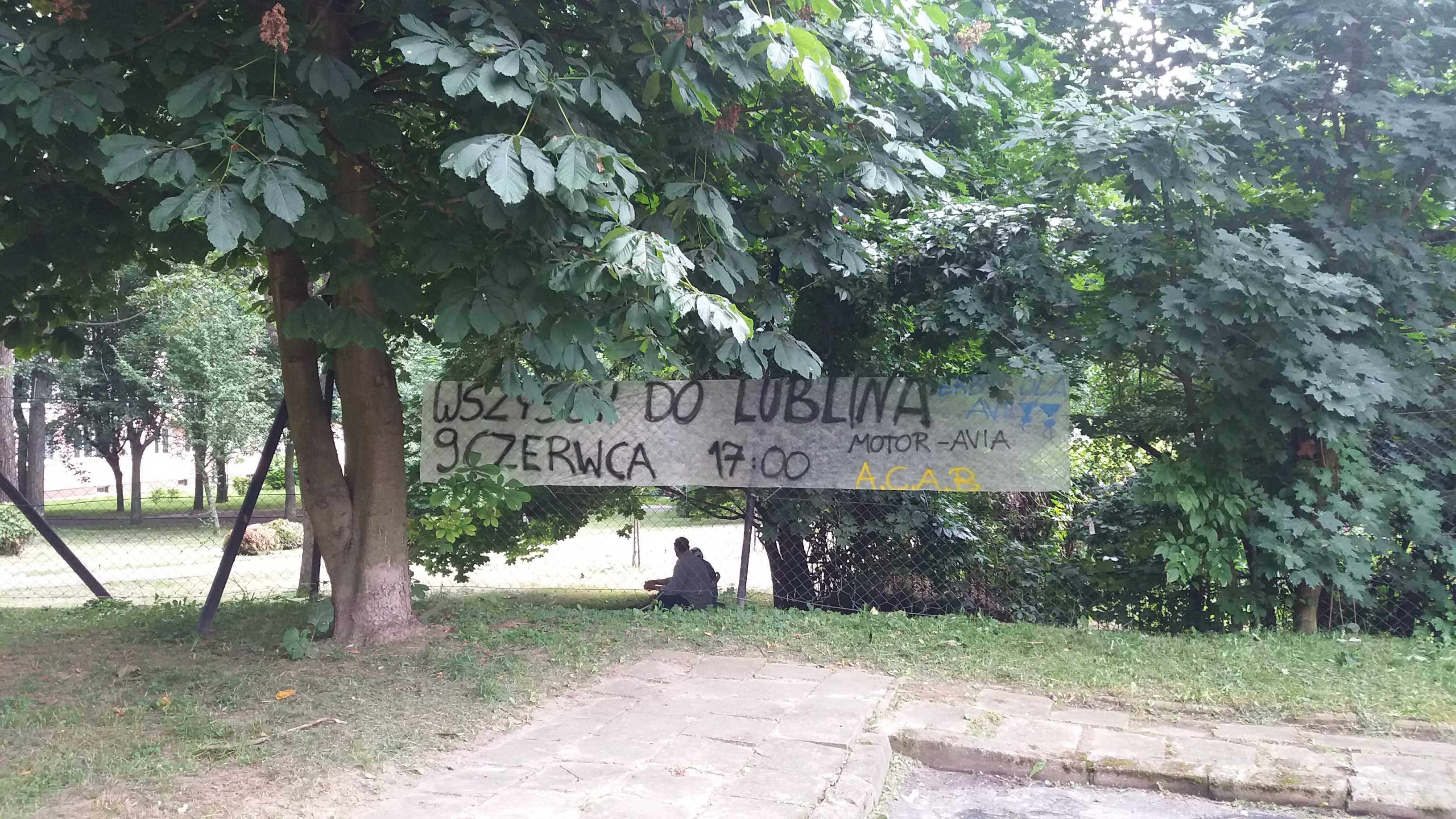 |  | | Kumaci rozkładają transparent o treści Wszyscy do Lublina | |