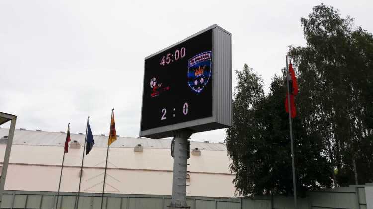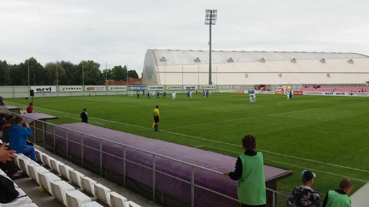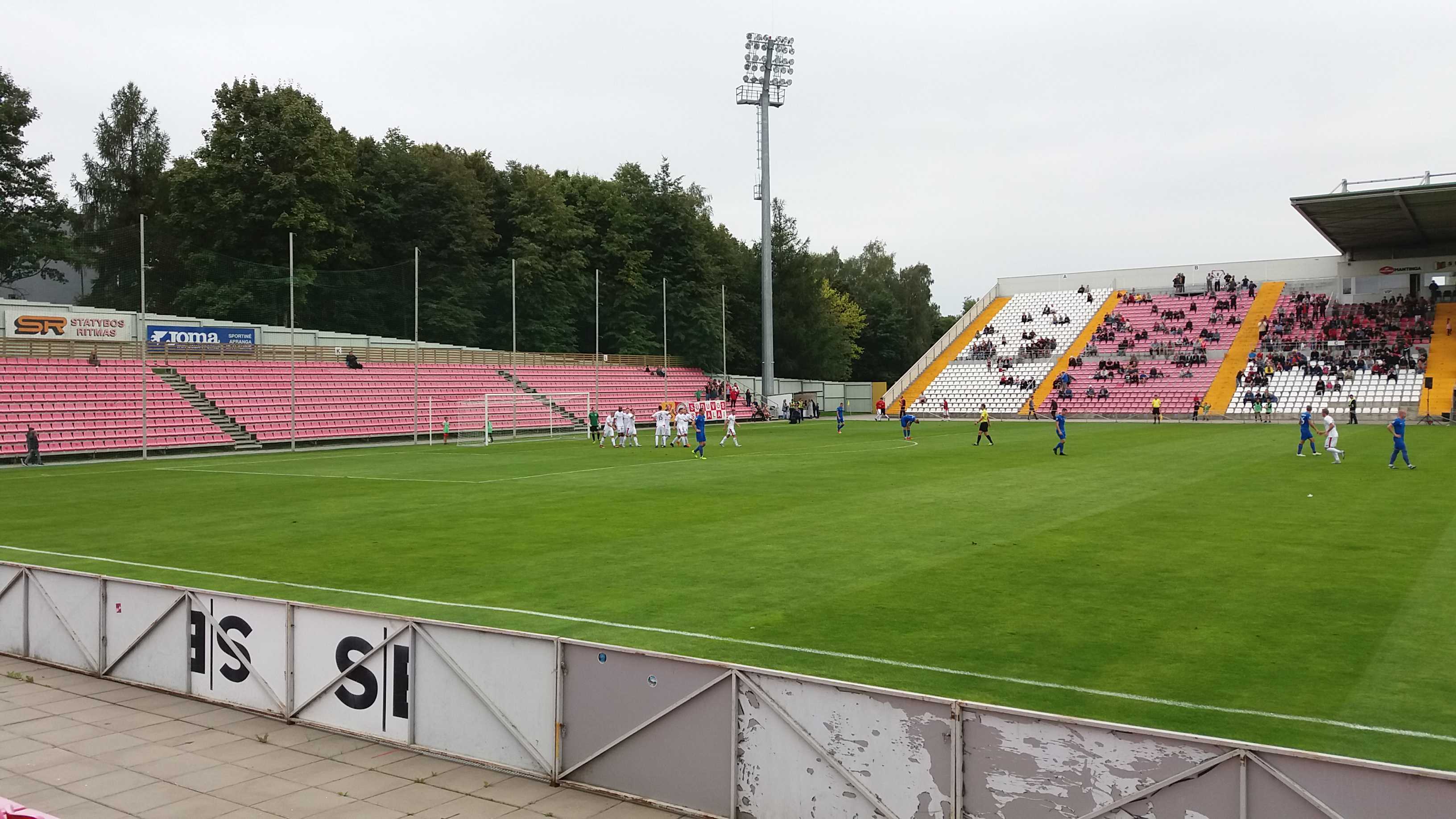 |  | | Końcówka pierwszej połowy; gracze Suduvy wracają na własną połowę po drugim golu Gotalasa | |
