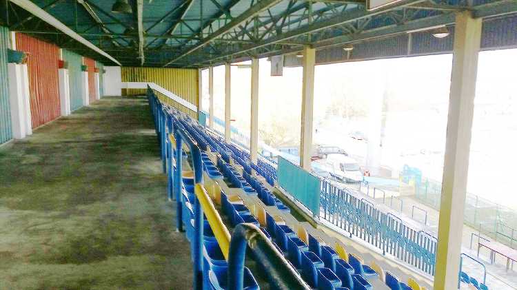 |  | | Kawałek trybuny Odkrytej, wyłączonej z użytku. Funkcjonuje jedynie widoczny gdzieś na zdjęciu sektor gości | |
