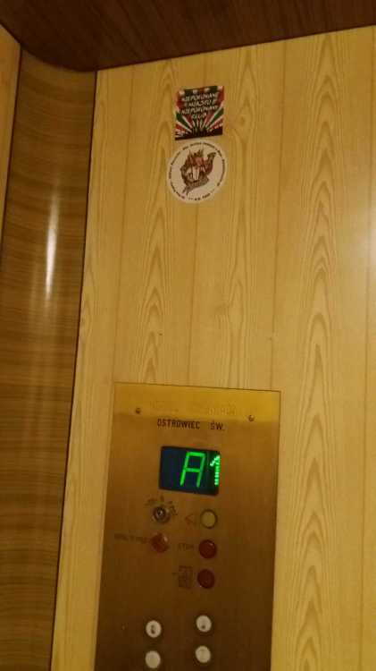 |  | | Winda w byłym hotelu Gromada w Ostrowcu Św. Oczywiście vlepka Legii | |