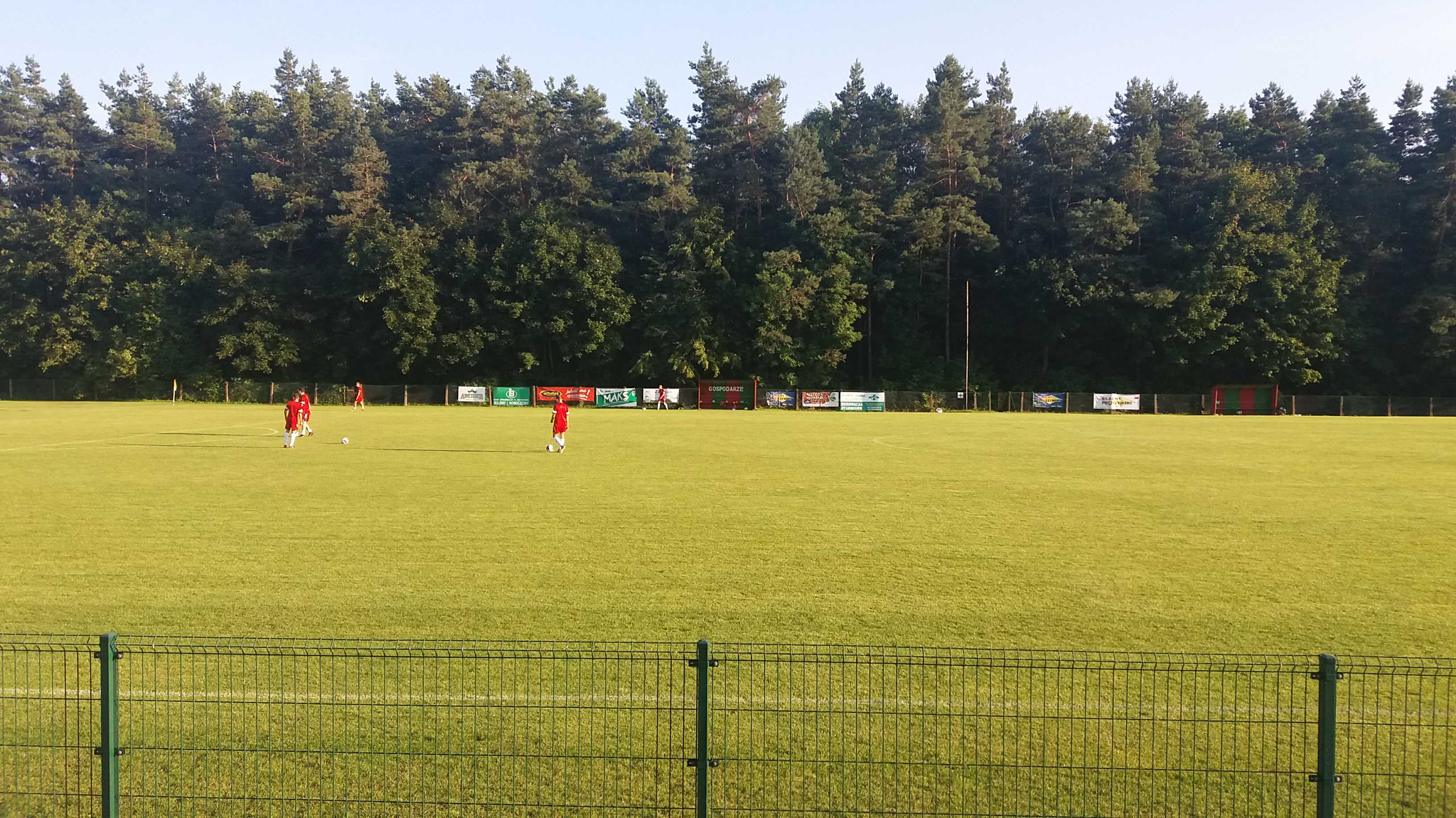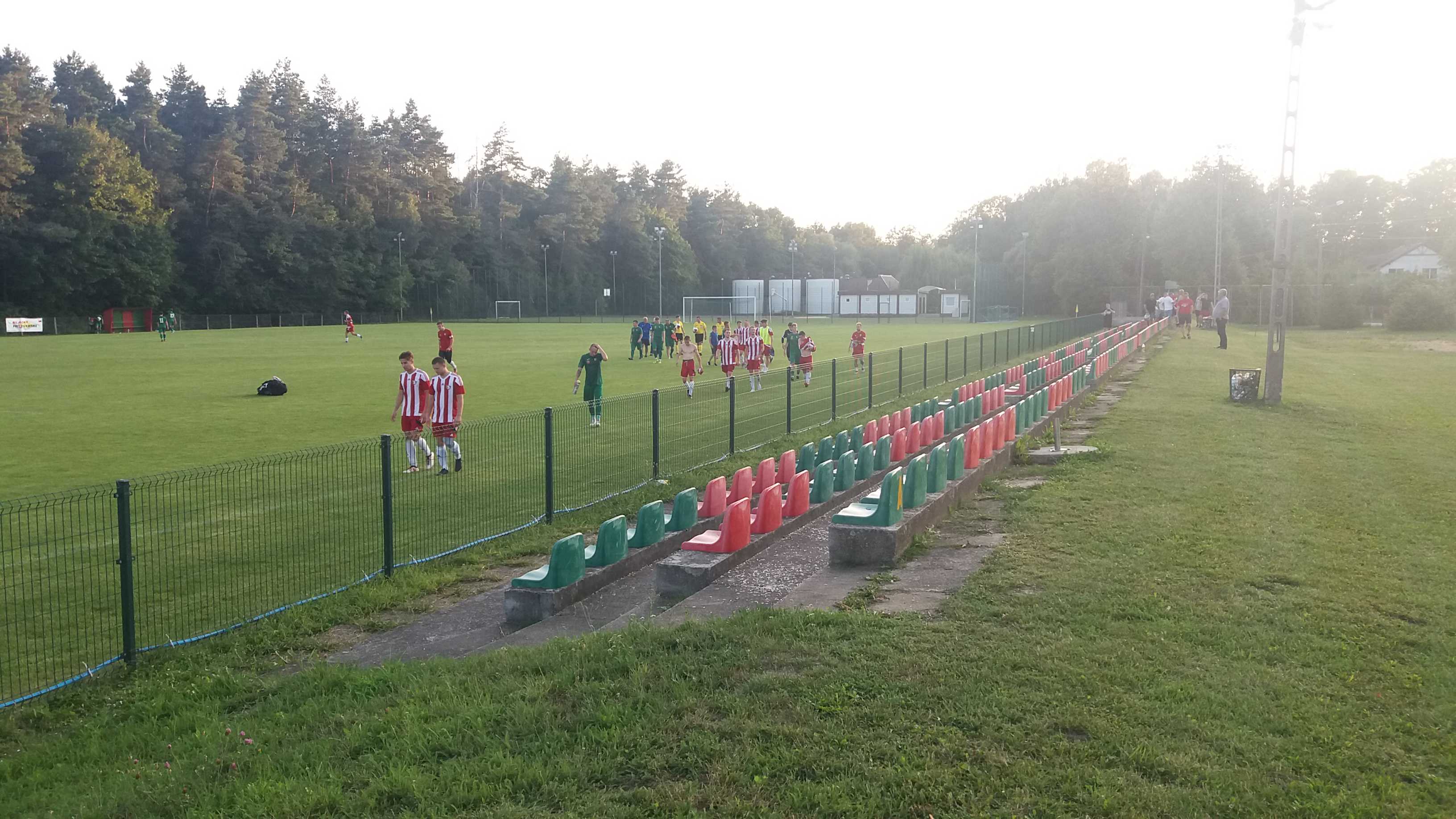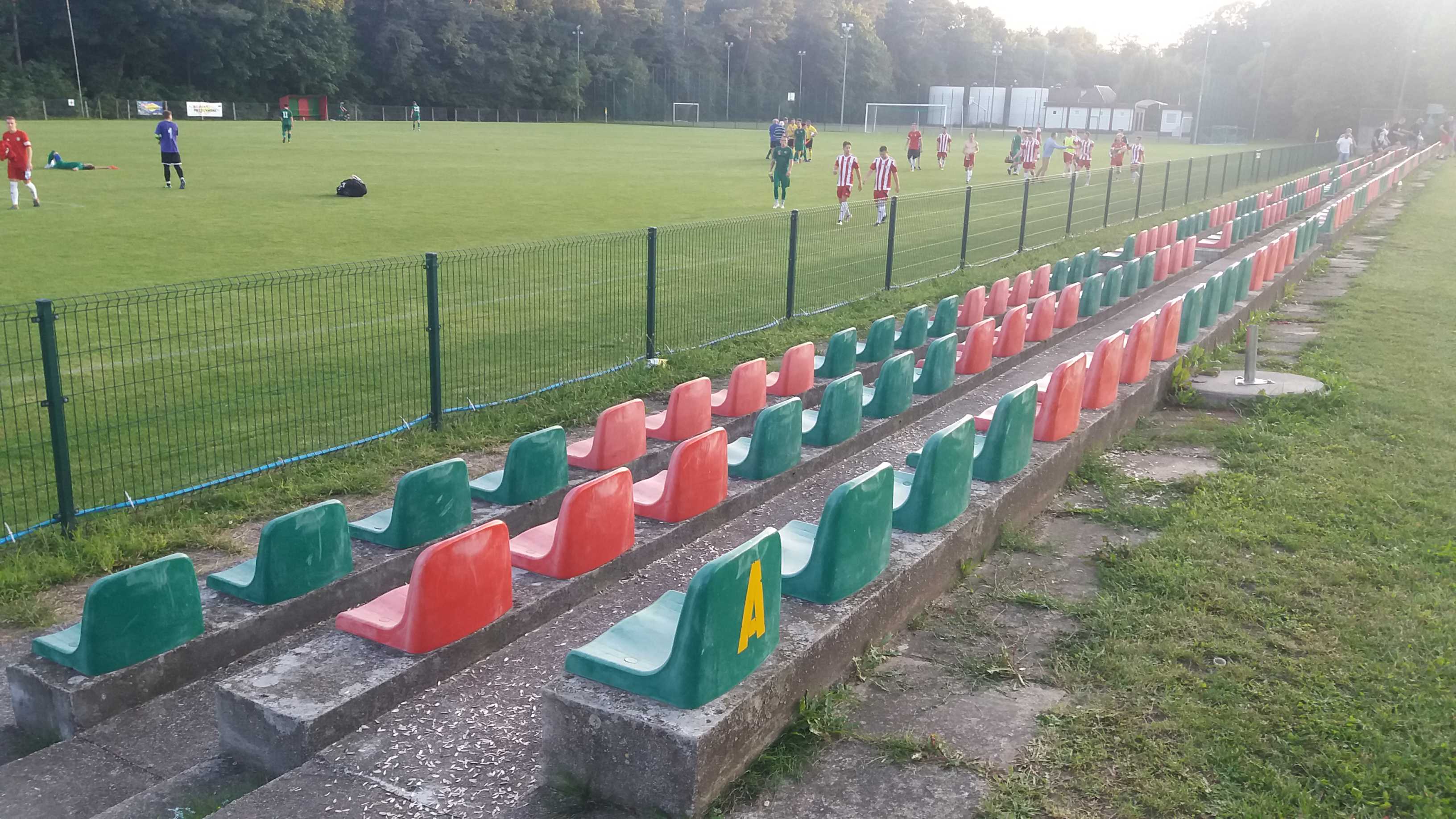 |  | | Przerwa. Podoba mi się las tuż za boiskiem + w powiększeniu widać fajną ławkę rezerwowych gości. | |