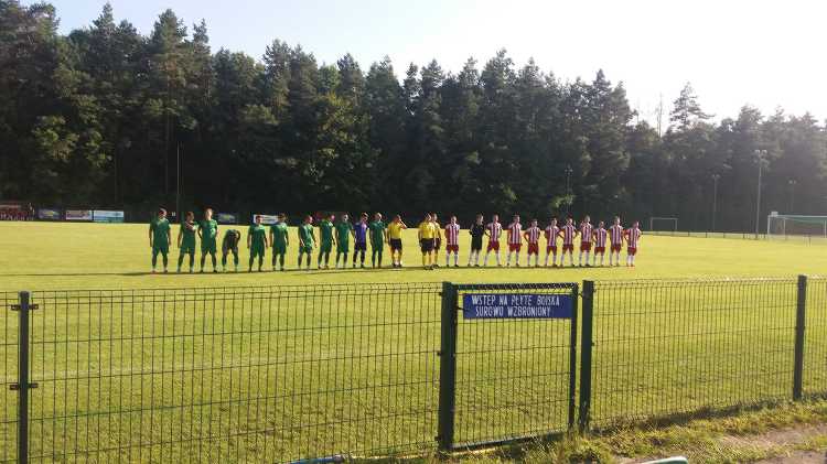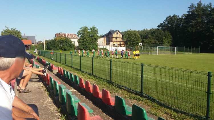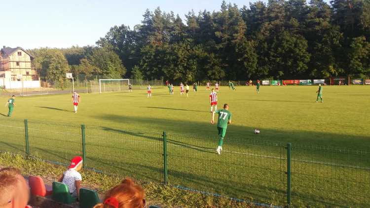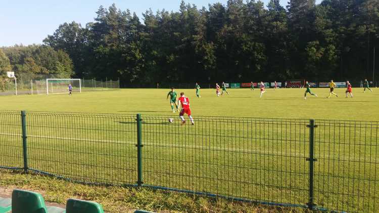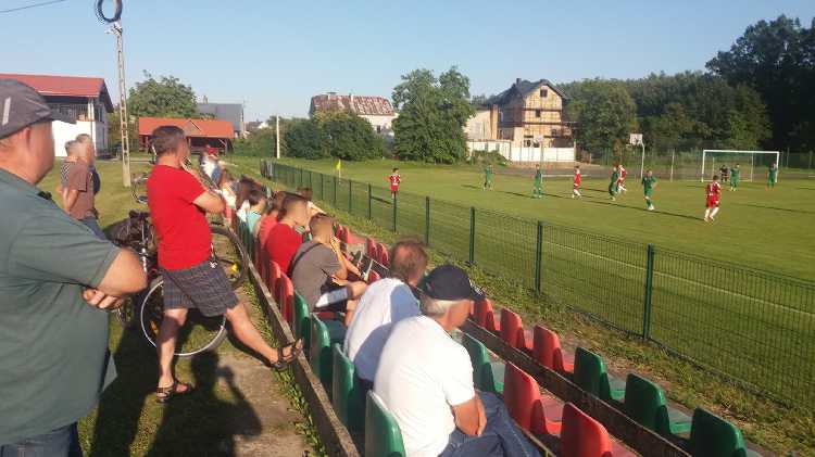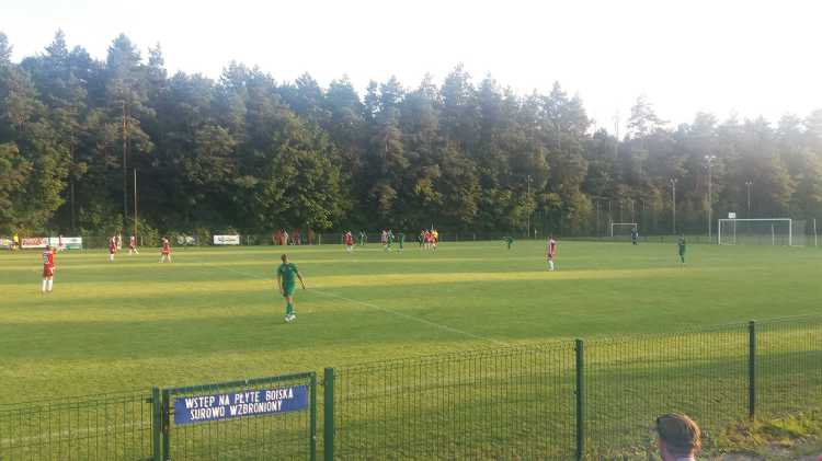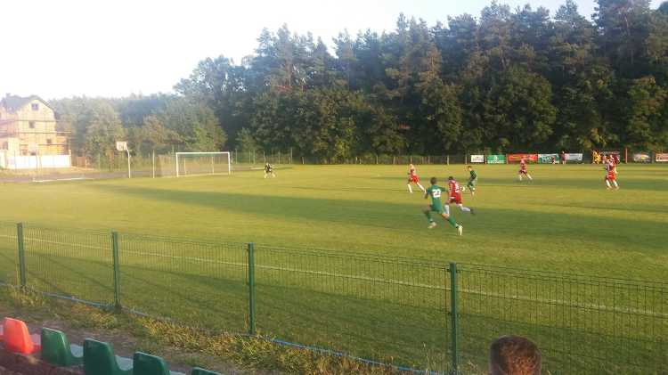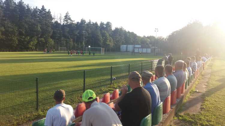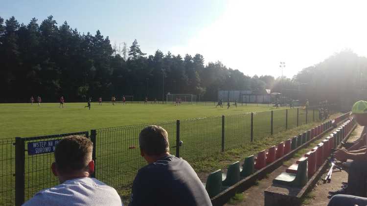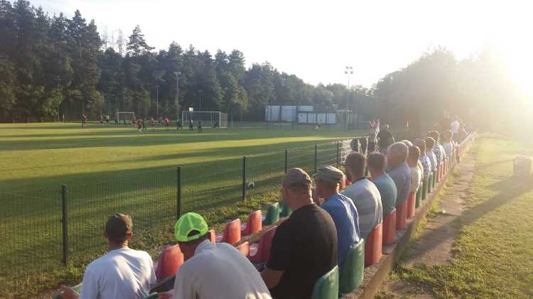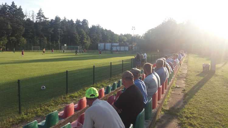 |  | | 14. minuta, radość gości z Dąbrowy Białostockiej po golu Ołowia. Nic nie widać przez to cholerne słońce | |