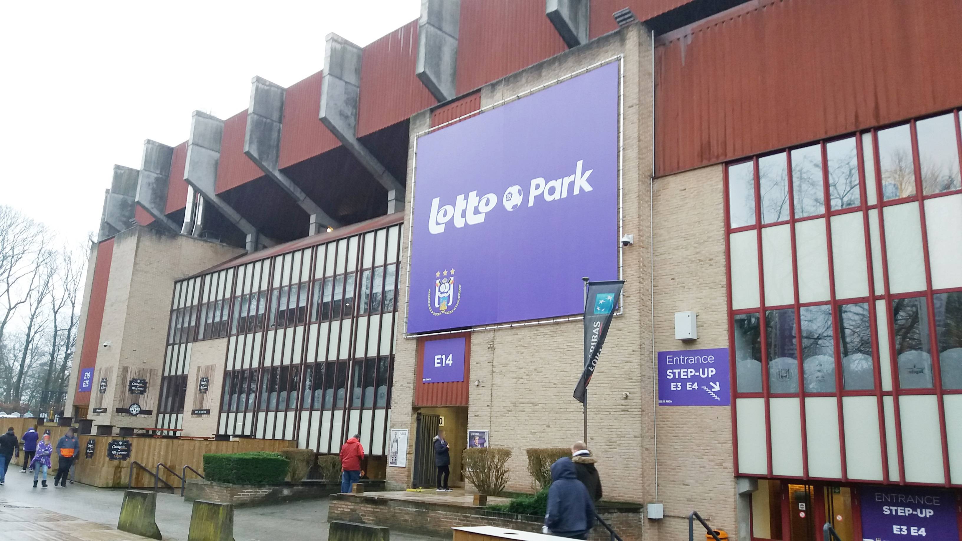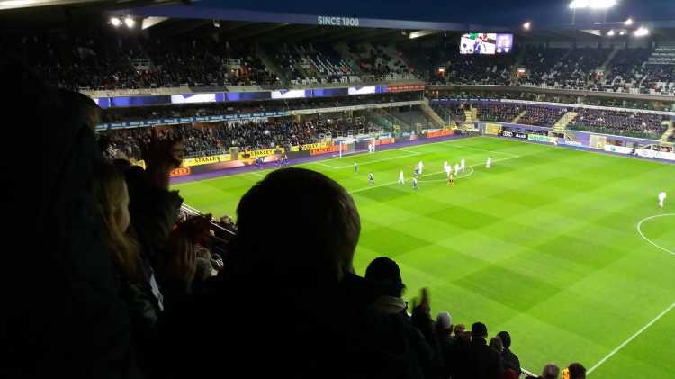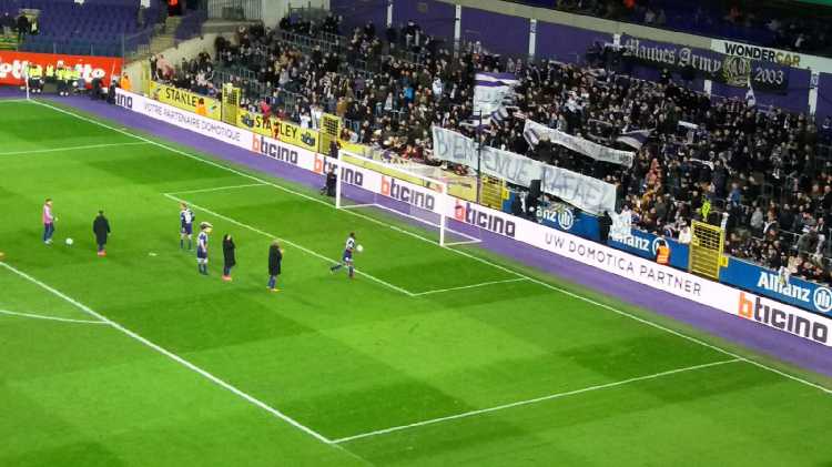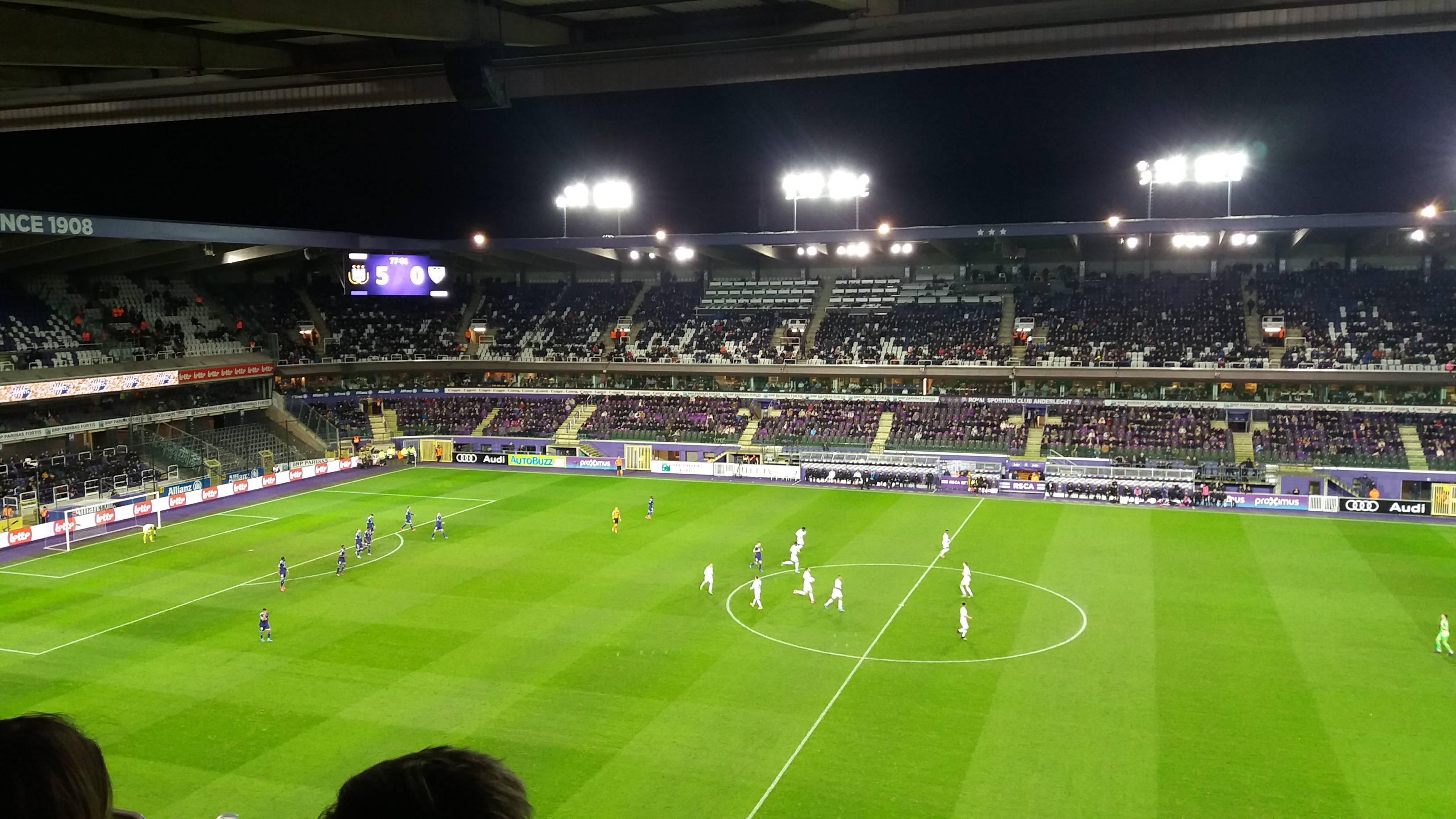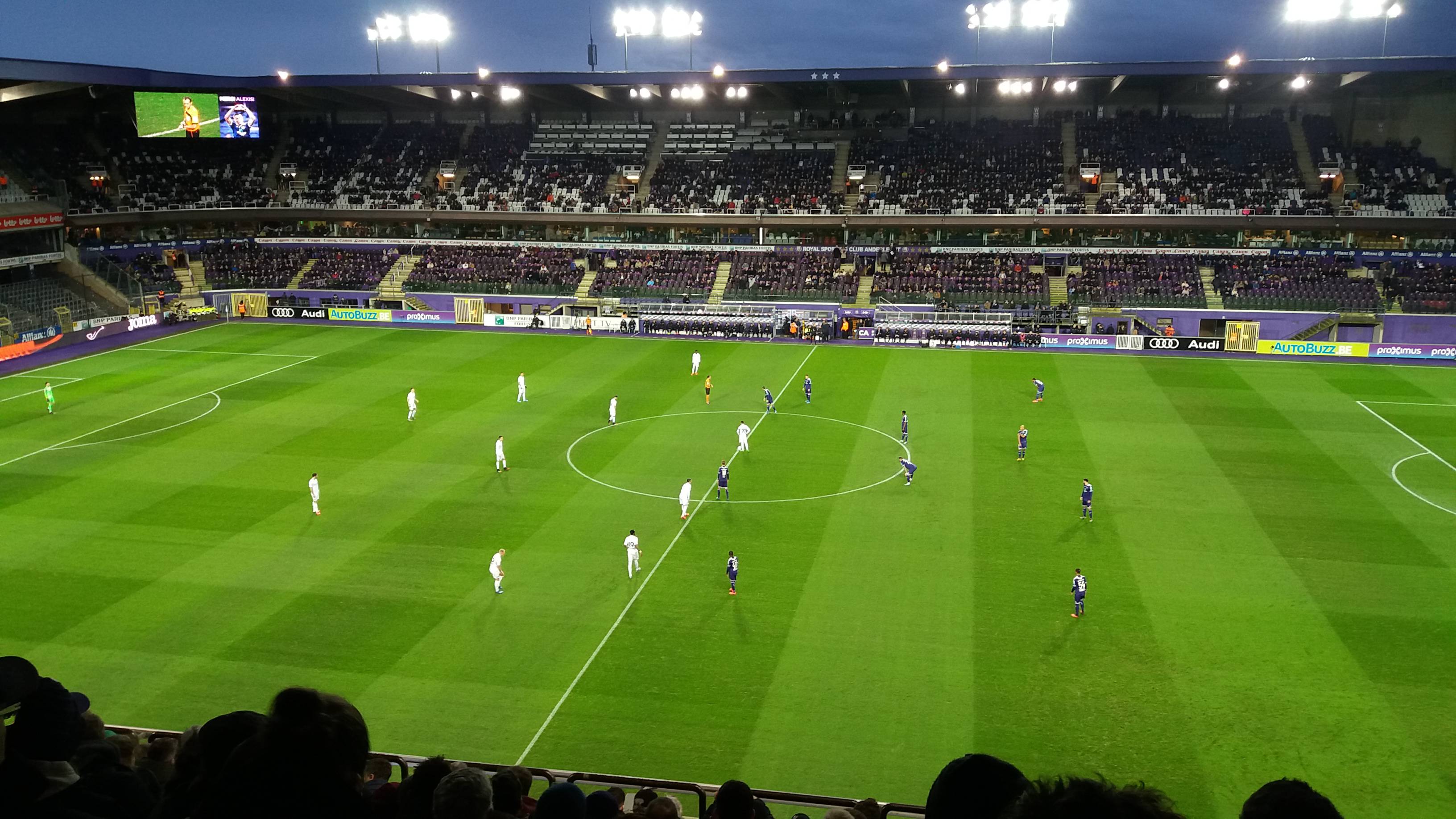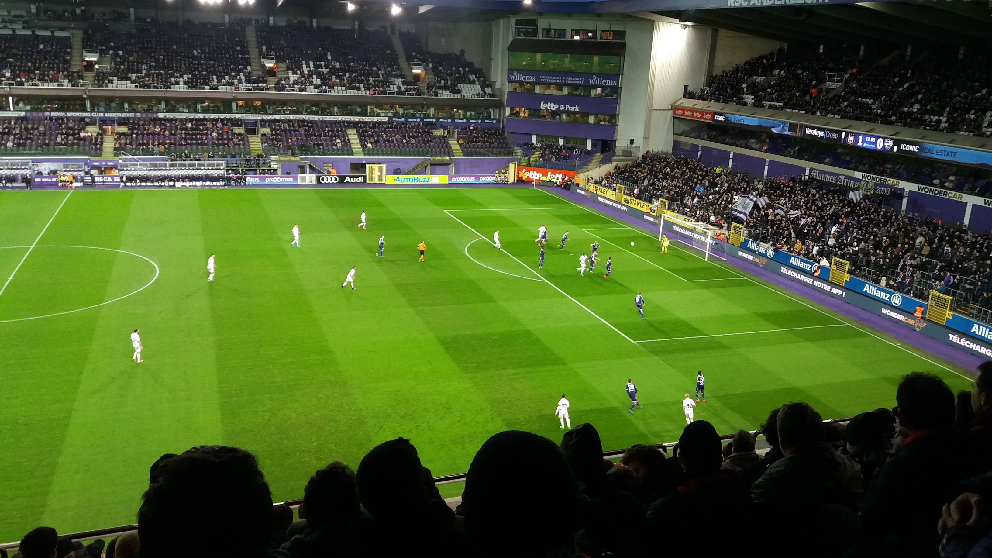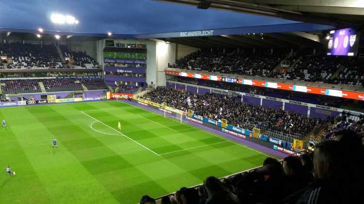 |  | | Kick-off. Na szczęście, Anderlecht pod białymi bluzami dresowymi miał fiołkowe trykoty. | |