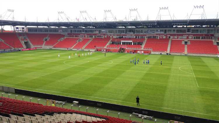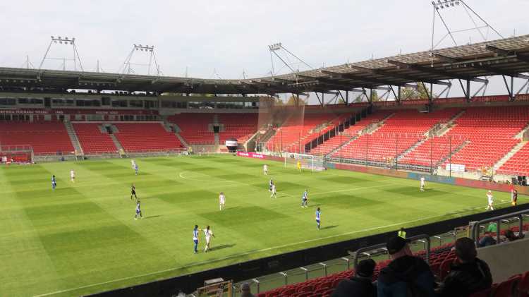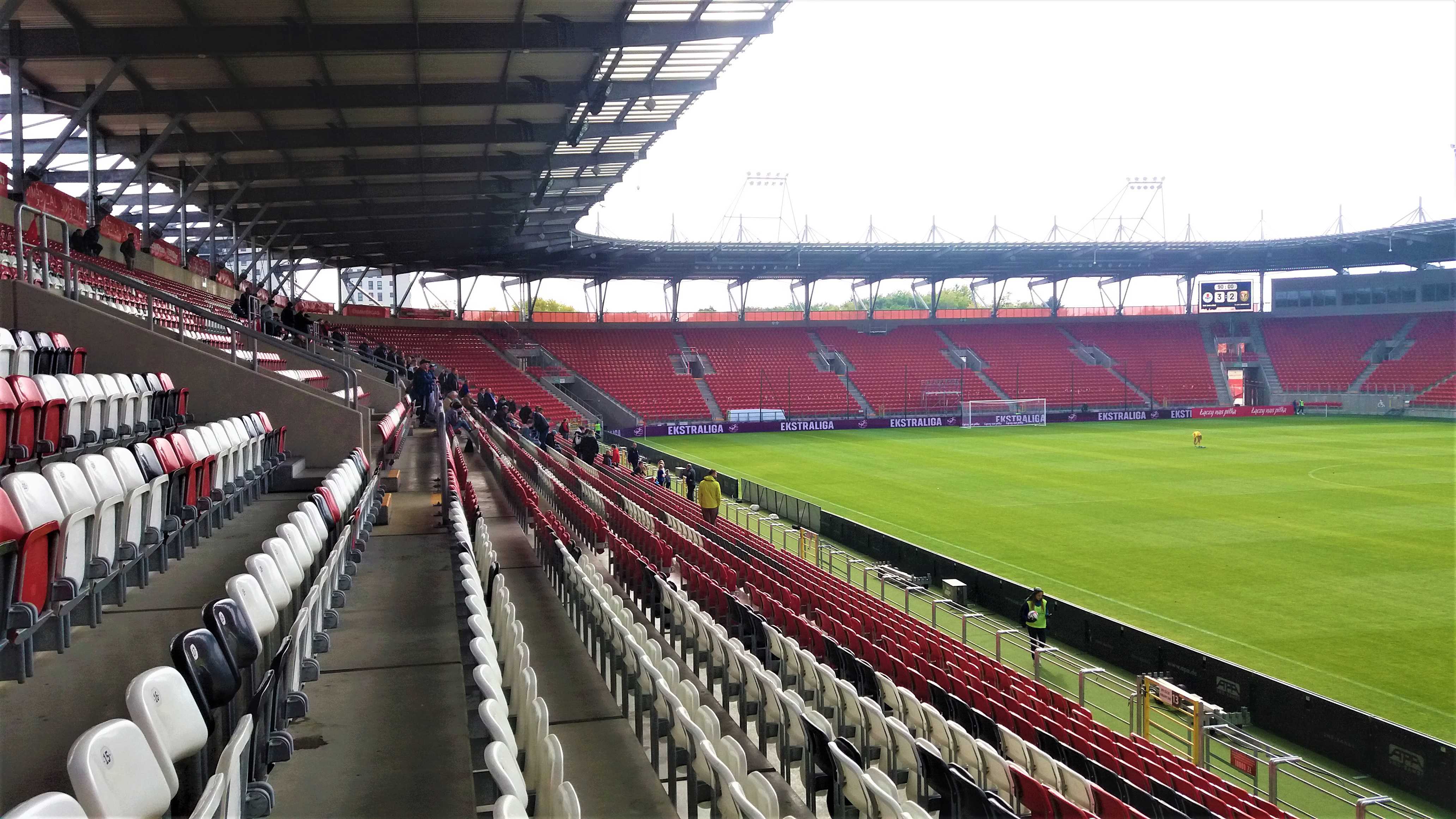 |  | | Rzut oka na trybunę (nie ma na niej więcej niż 150 kibiców) | |