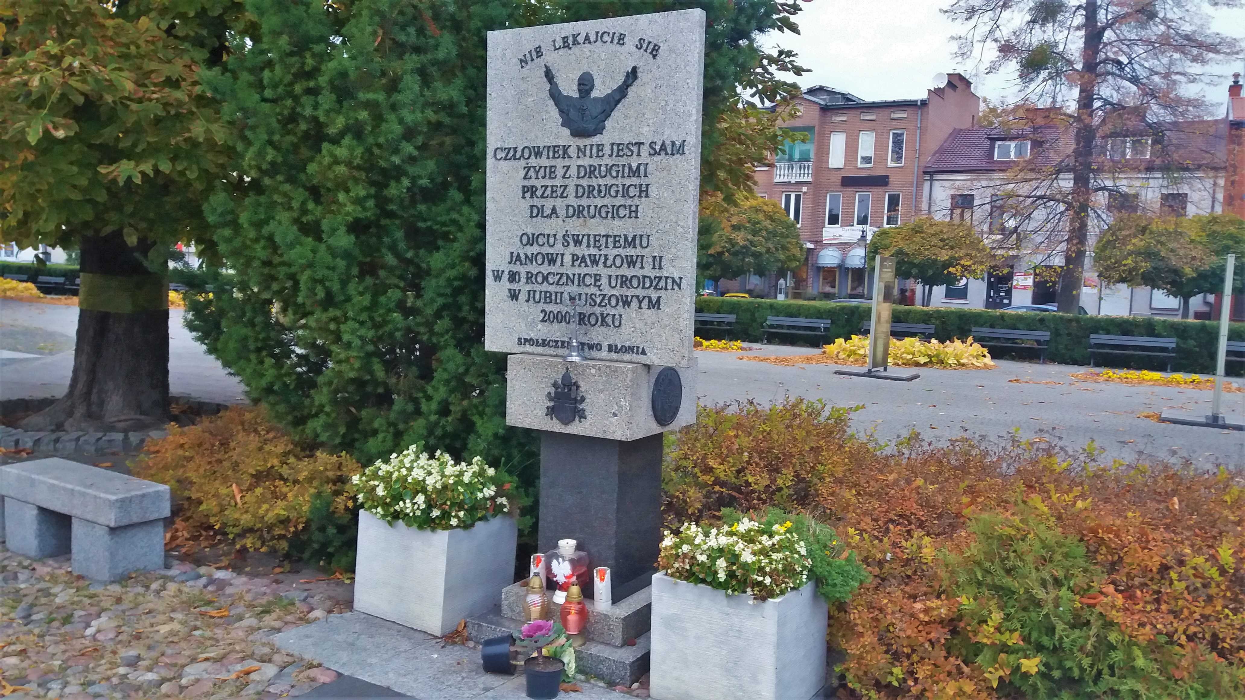 |  | | Pomnik Papieża na Rynku w Błoniu (w końcu papieskie Msze św. na Błoniach miały ponad milionową frekwencję) | |