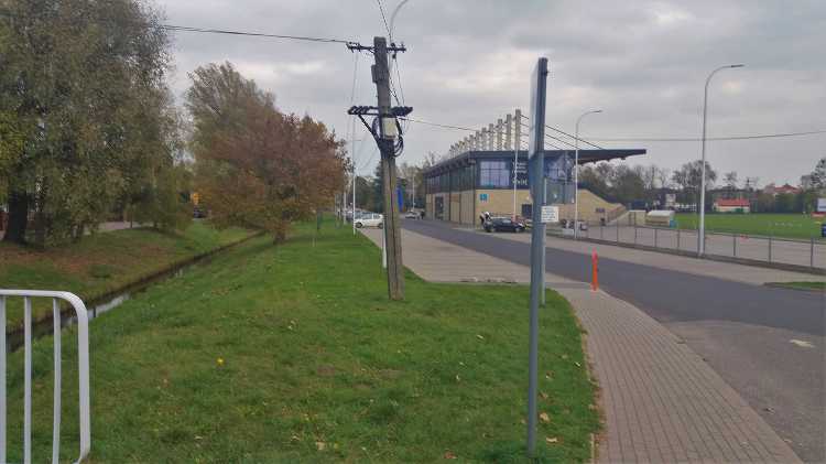 |  | | Widok na Stadion z perspektywy mostku nad okolicznym kanałkiem (a może to rzeczka, nie chce mi się sprawdzać) | |