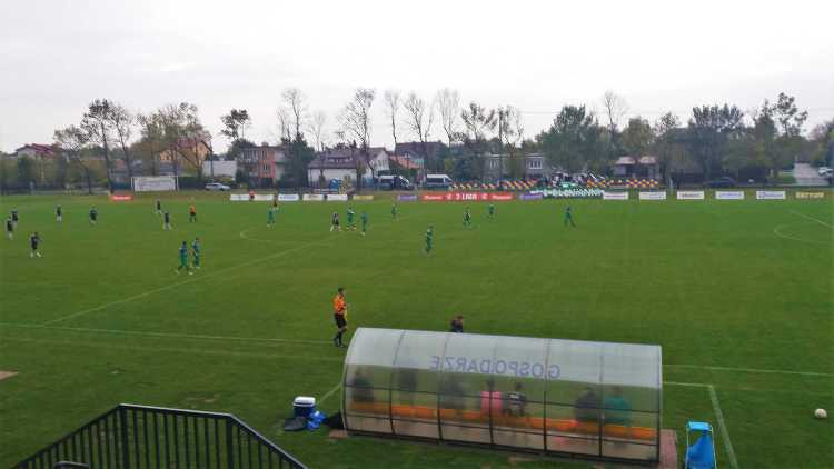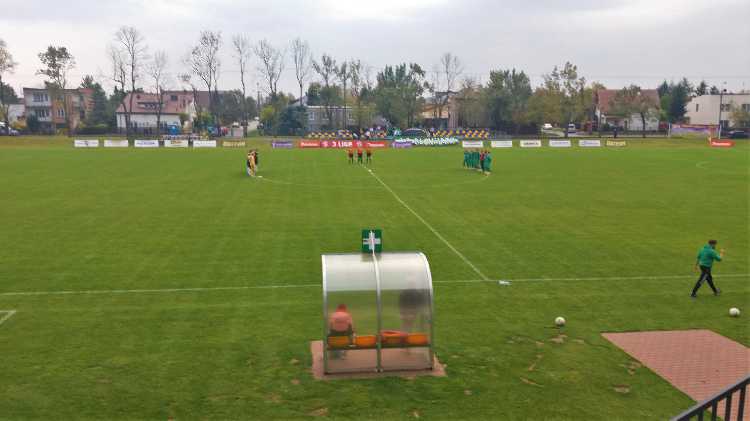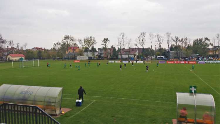 |  | | Piłkarze schodząna przerwę przy stanie 1:0 dla Błonianki | |