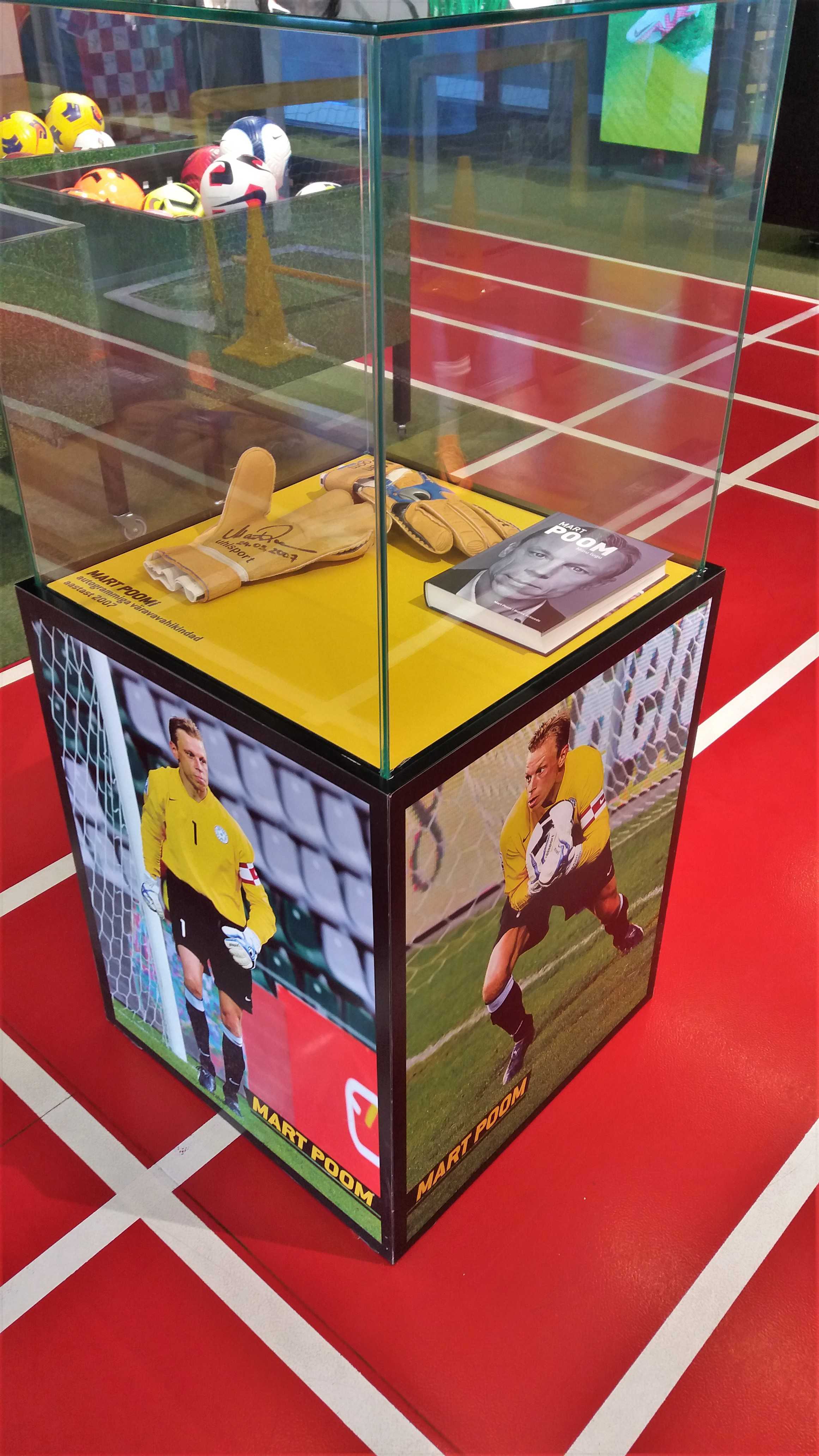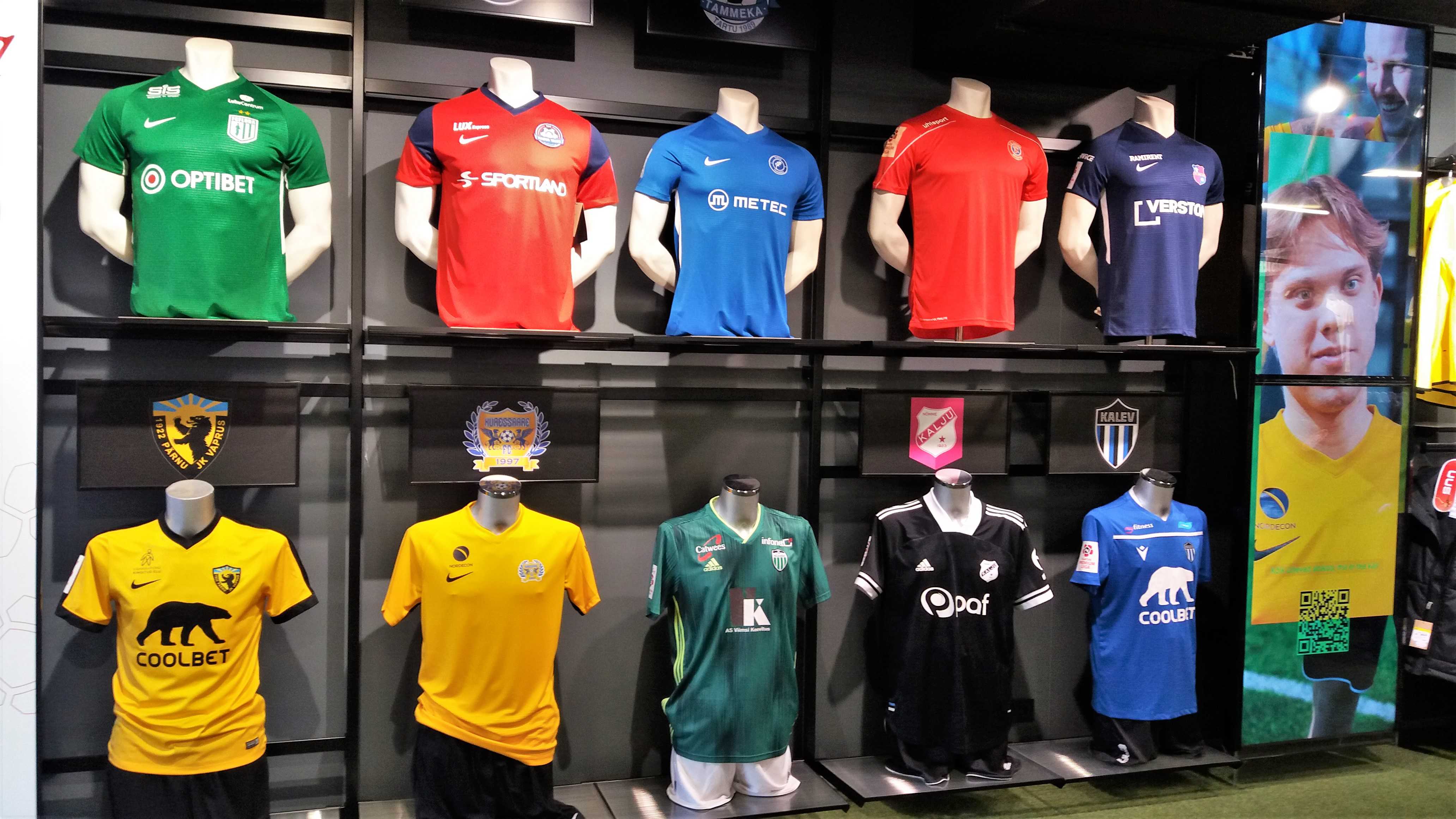 |  | | Wystawka w sklepie Sportland na terenie stadionu - koszulki piłkarskie wszystkich klubów Premier Liigi | |
