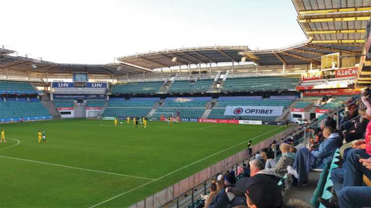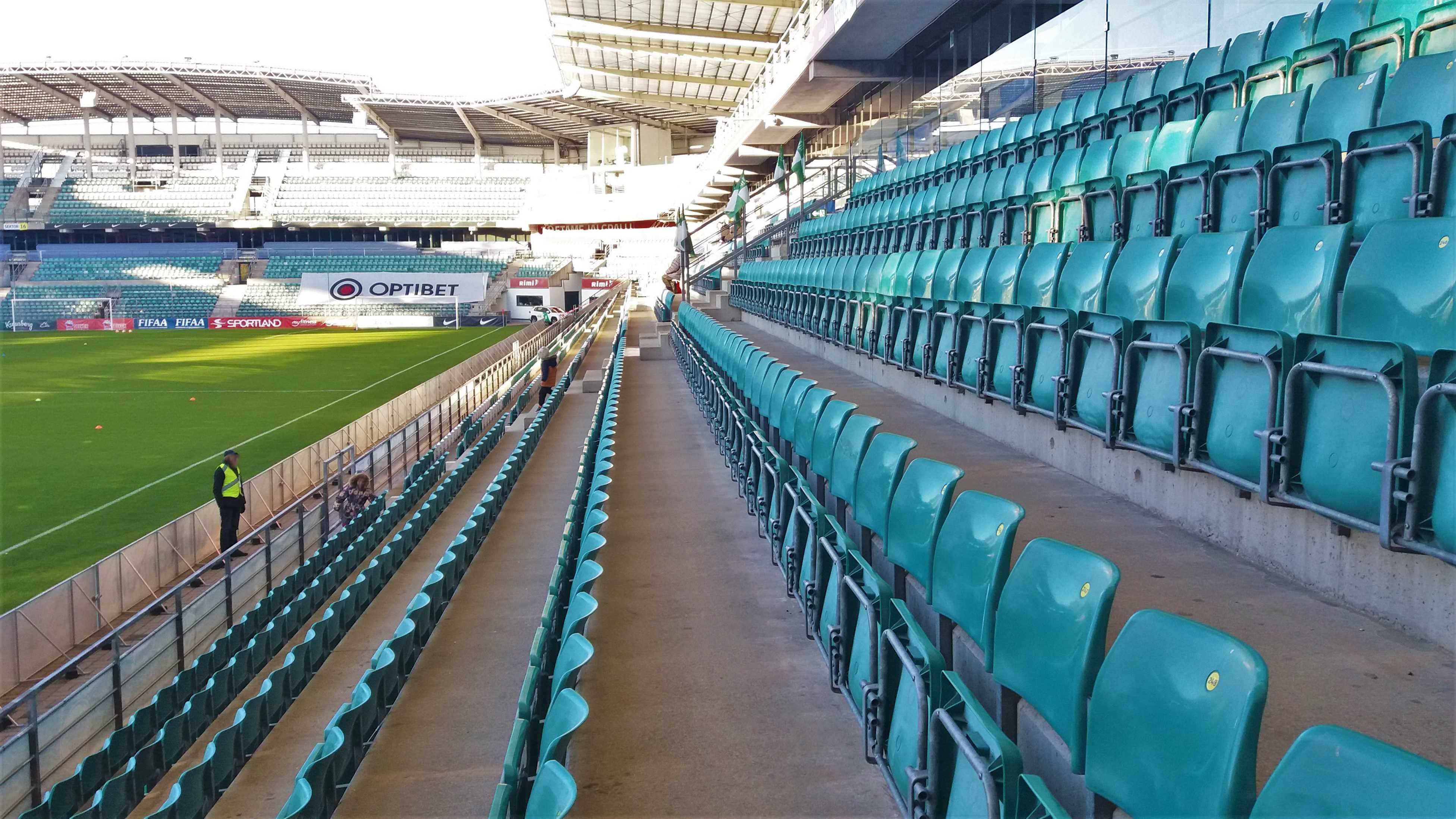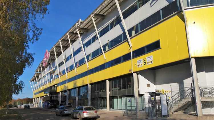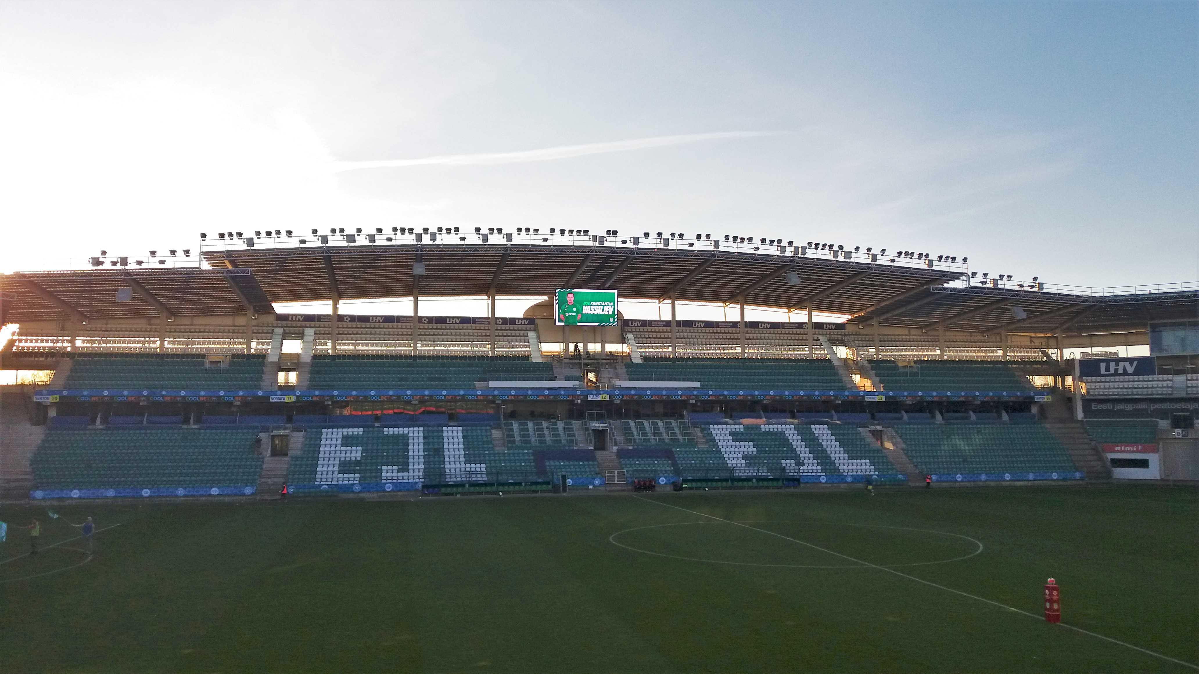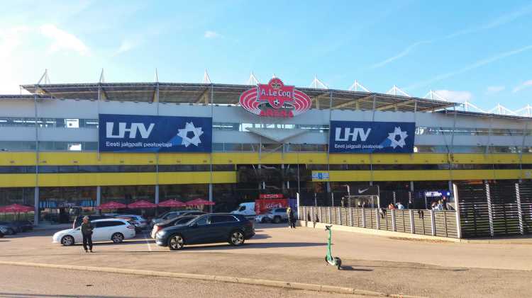 |  | | A. Le Coq Arena od strony zachodniej (bardzo mi się podoba, że ta piłka w logo browaru jest w 3D) | |