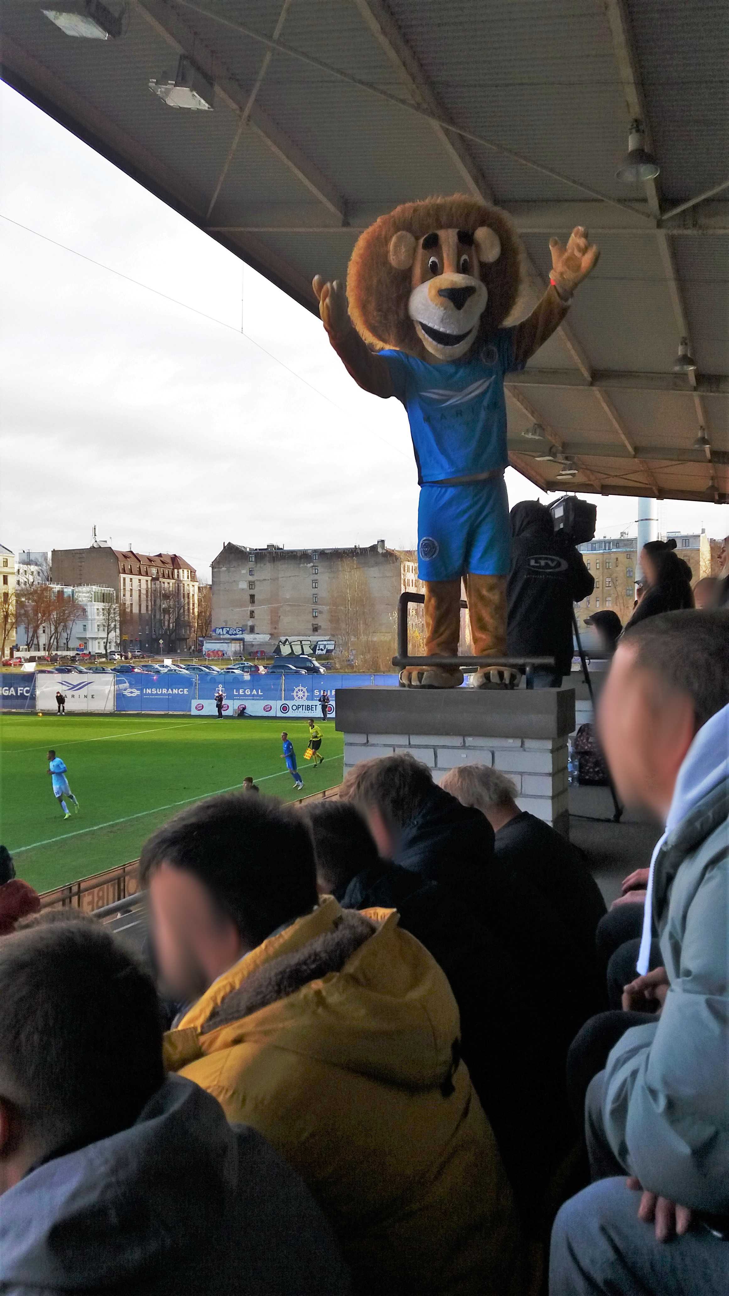 ![]() | Na zdjęciu widzimy w tle młyn Riga FC, a bardziej na pierwszym planie bardzo udaną maskotkę klubową. Chociaż jedna rzecz się tu nie udała - znajdujący się w środku człowiek patrzy chyba przez pysk lwa, który cały czas się przymykał. Dlatego też maskotka cały czas trzyma rękę przy pysku, tak jakby bolał ją ząb | |||
