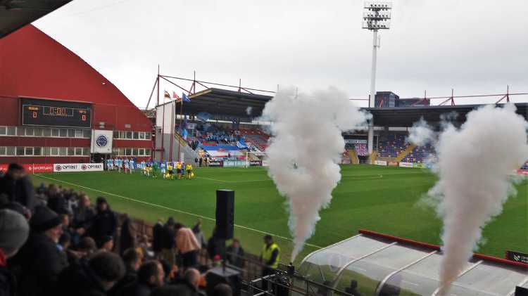 ![]() | Piłkarze są coraz bliżej, a stadionowy DJ uruchamia raz po raz armatki dymne (czy nie wiem jak to się nazywa) | |||