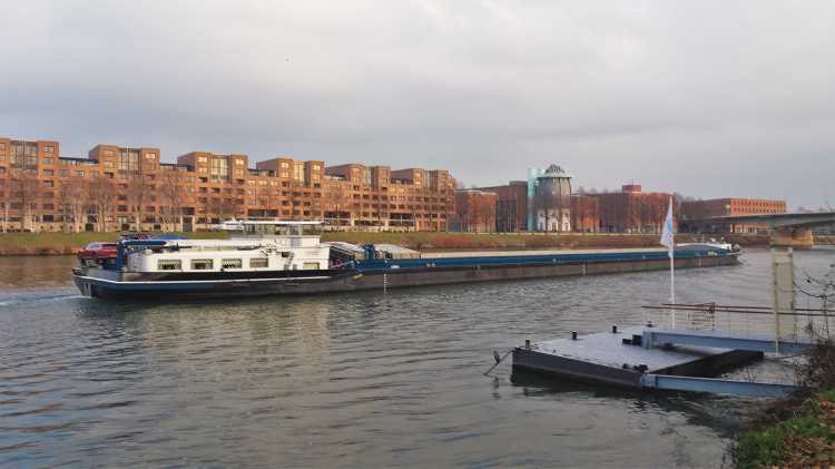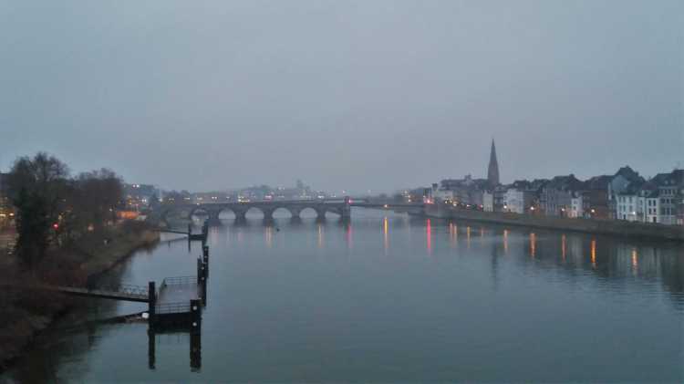 |  | | Sobotni poranek - widok na Mozę z perspektywy kładki dla pieszych | |