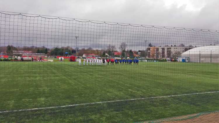 |  | | Piłkarze wychodzą z dziesięciominutowym opóźnieniem na murawę | |