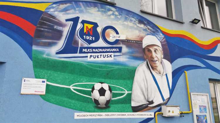 |  | | Zbliżenie na mural z wizerunkiem Wojciecha Werczyńskiego | |