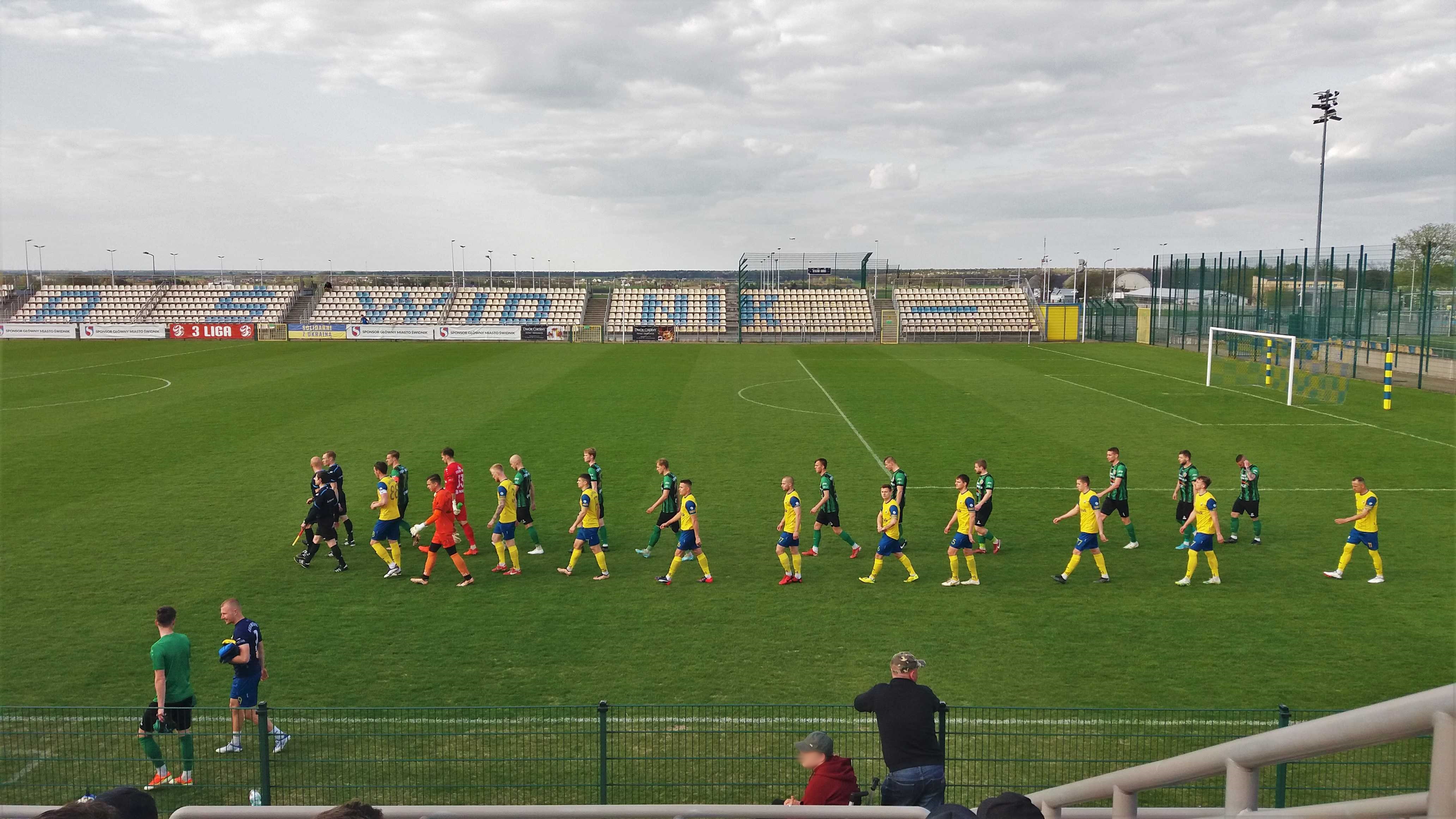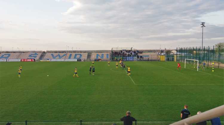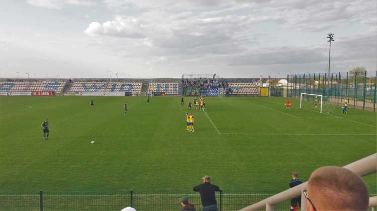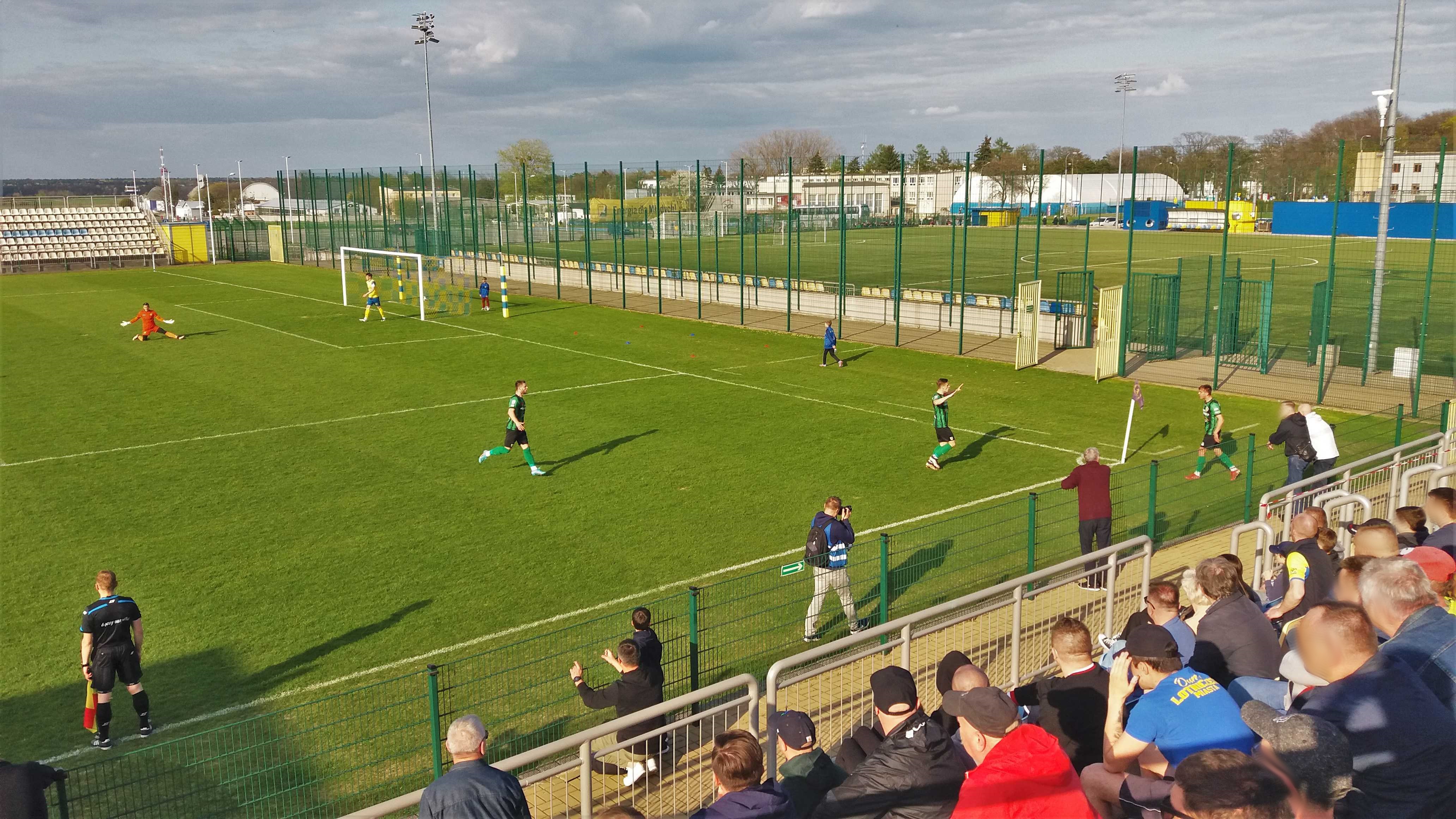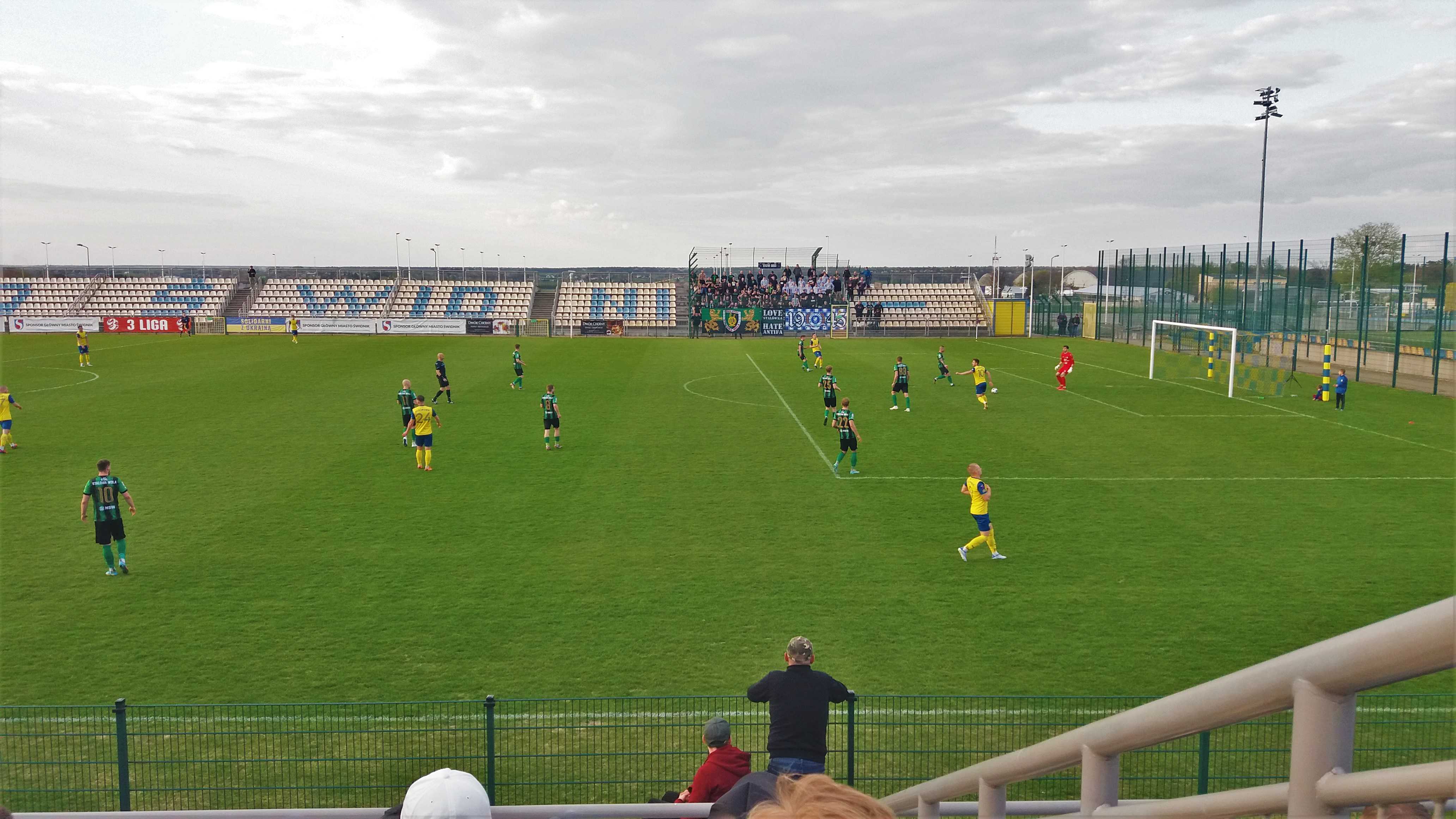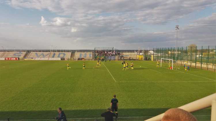 |  | | Arkadiusza Ziarko celebruje gola na 1:0, bramkarz Dawid Rosiak zastygł w pozie mówiącej co jest, kurwa? , a w oddali kibice Stalówki dopiero wyszli z autokaru | |