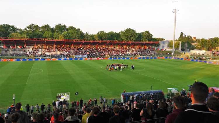|  | | ok. 35. minuta - kibice gości meldują się w swoim sektorze i rozpoczynają doping | |