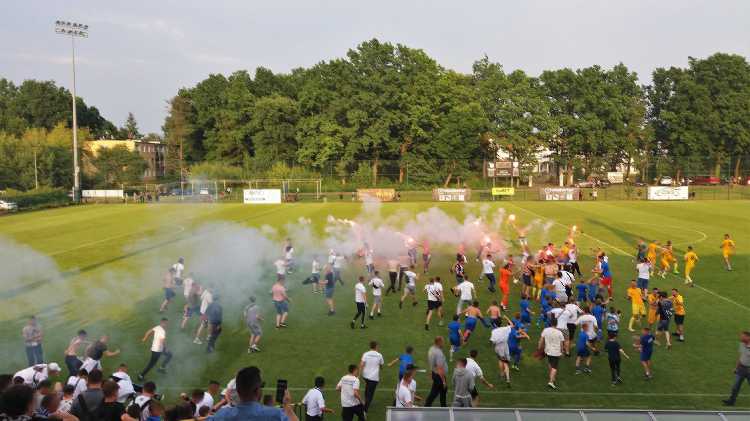 |  | | Koniec meczu w Mińsku Mazowieckim, kibice Victorii robią pitch invasion | |