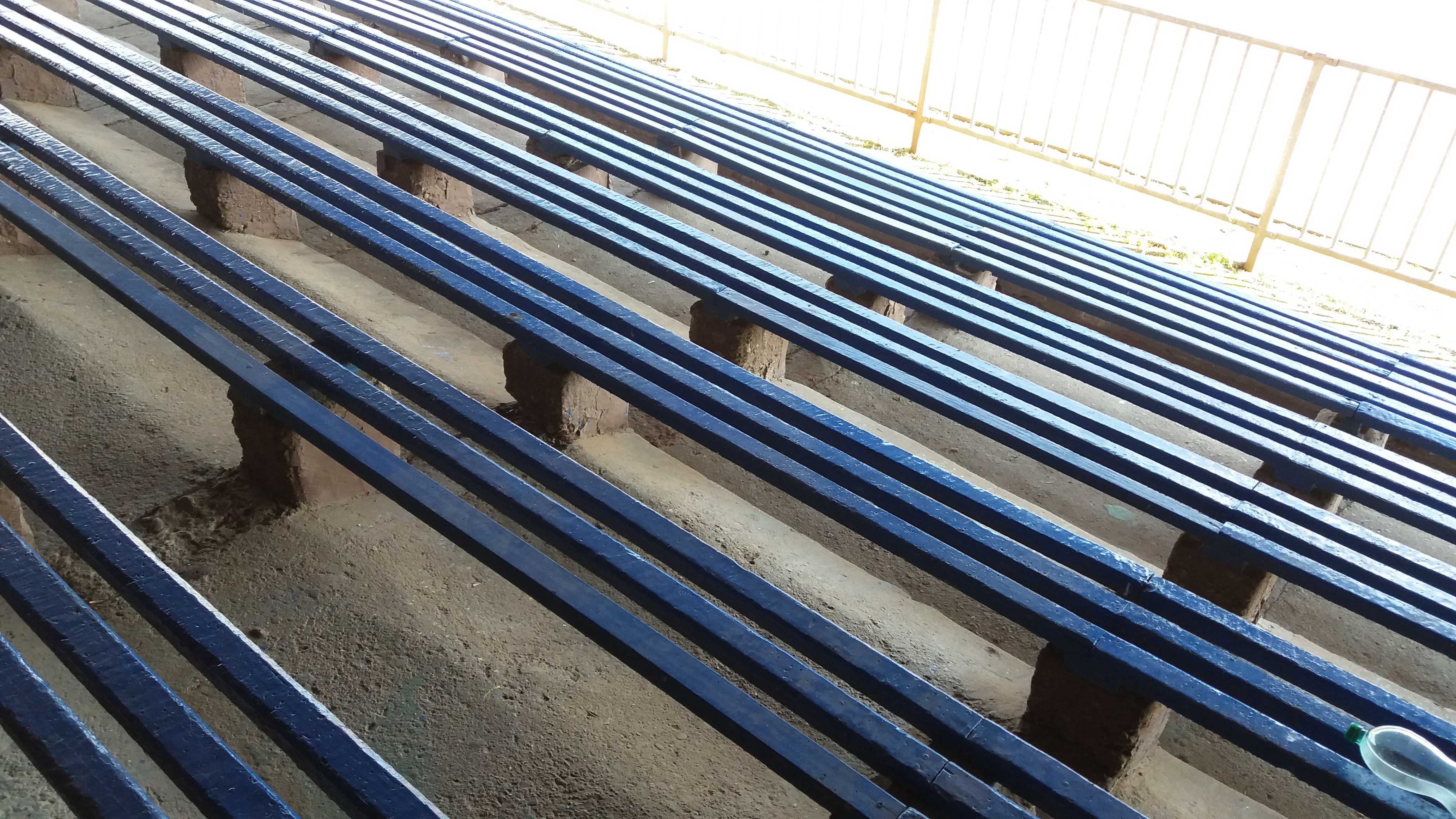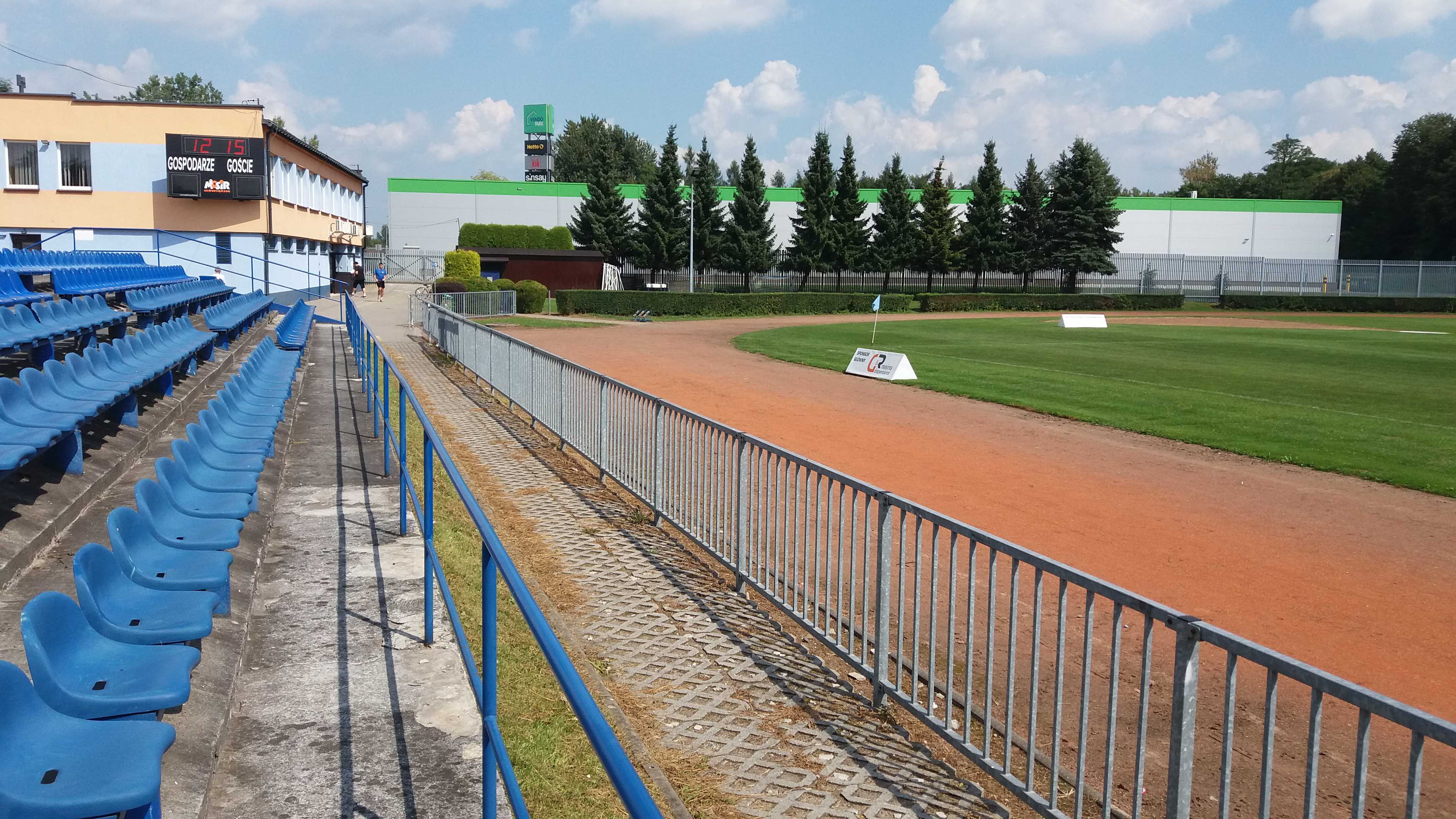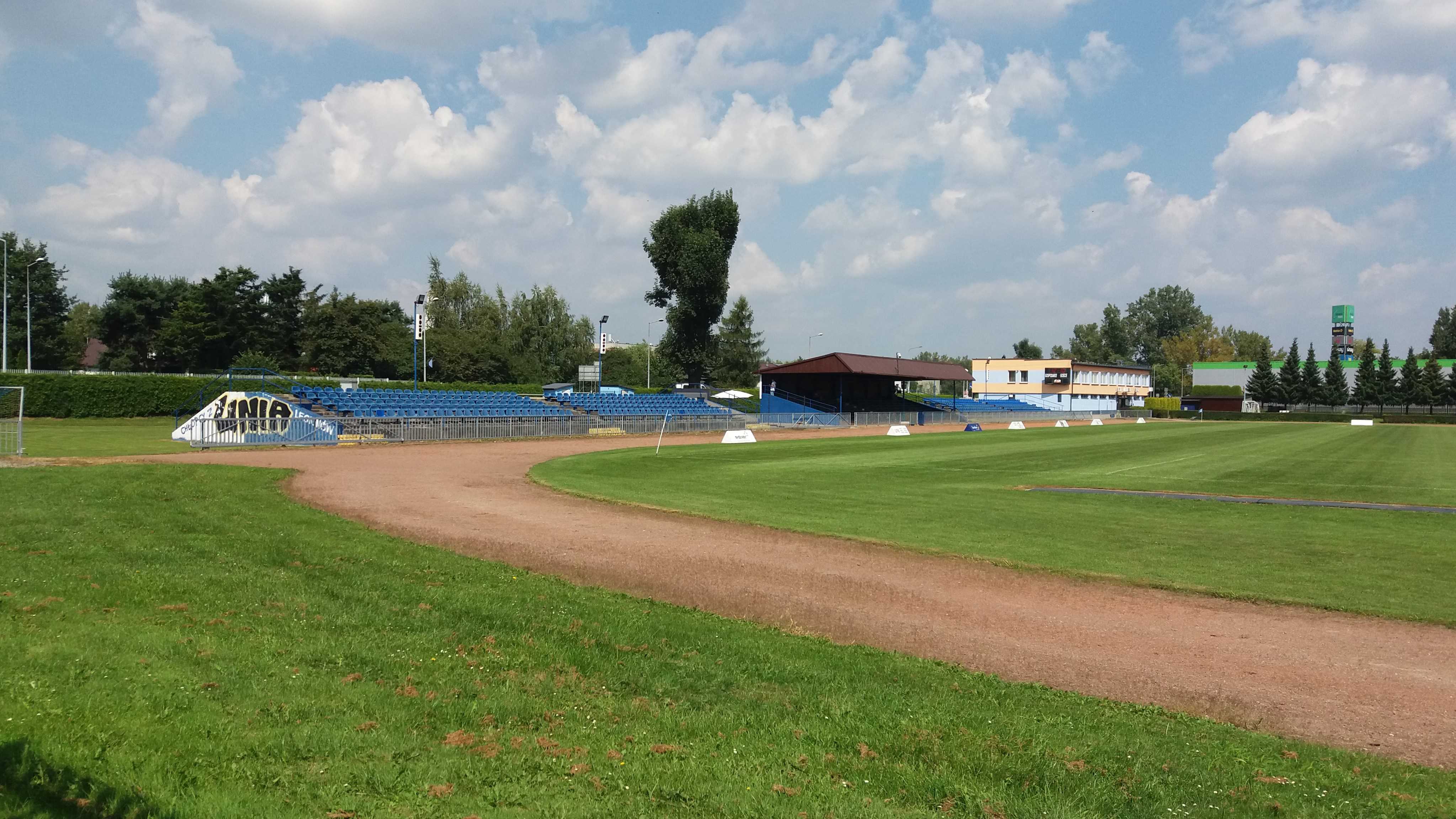 |  | | Na tym zdjęciu chcialem ująć zarówno ławeczki na centralnym sektorze jak i niepotrzebnie szeroką bieżnię | |