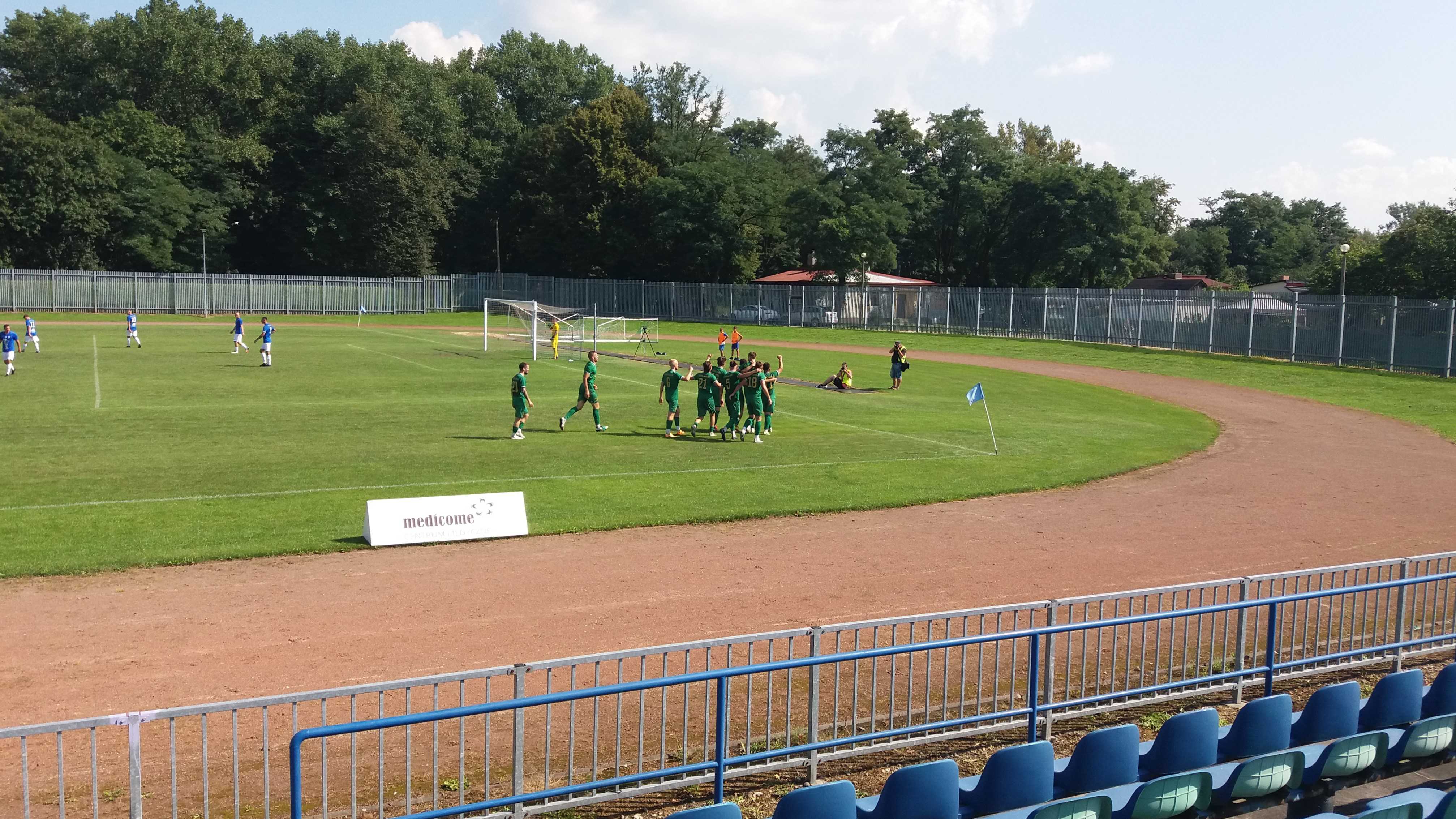 |  | | Piłkarze schodzą na przerwę przy stanie 1:0 | |