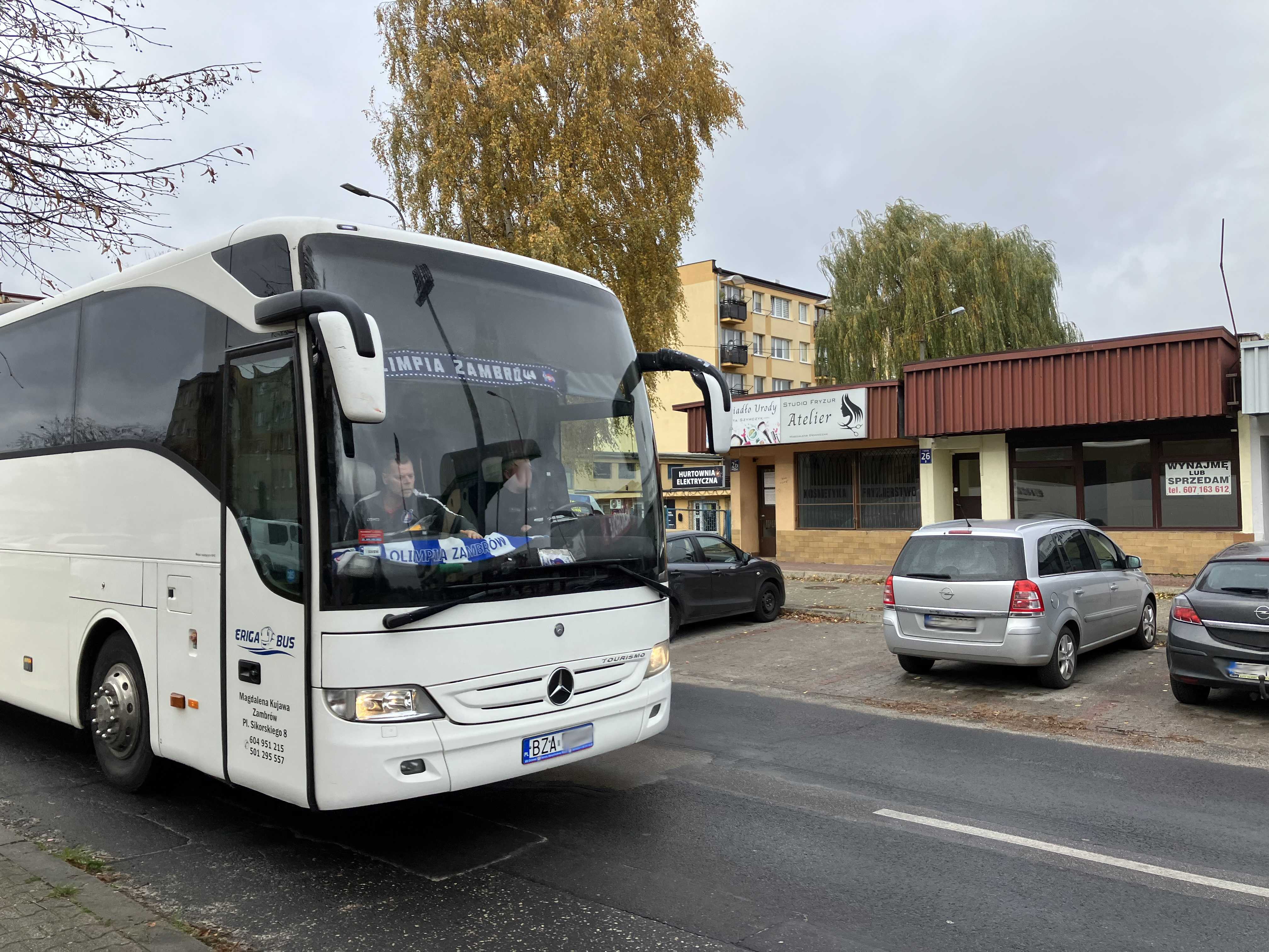|  | | Autokar Olimpii Zambrów zajeżdżający na stadion | |