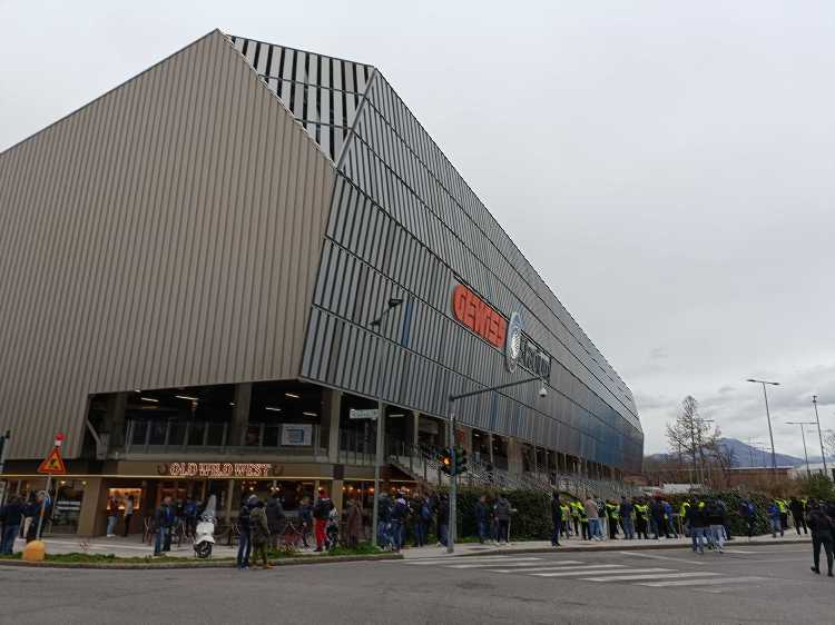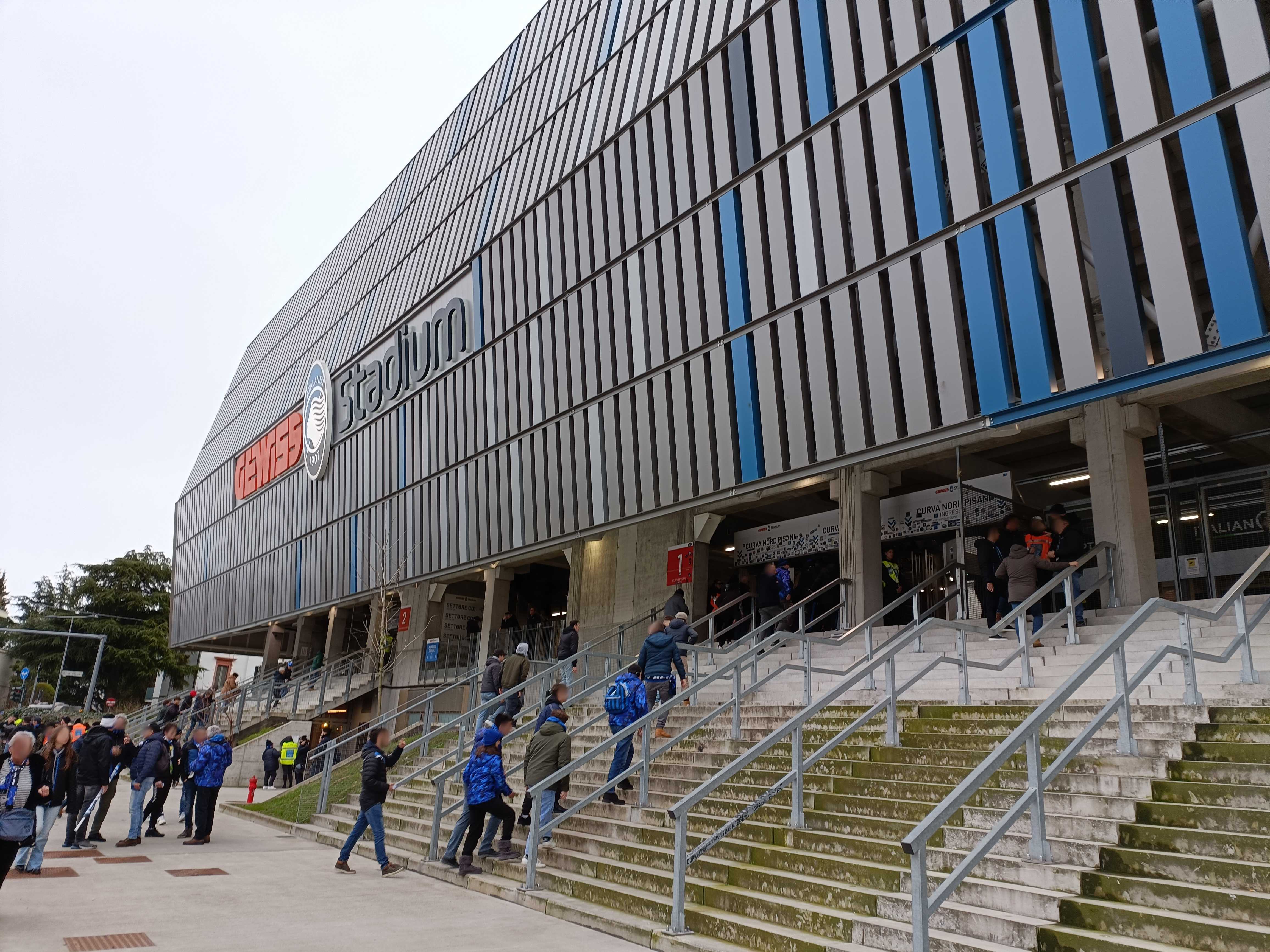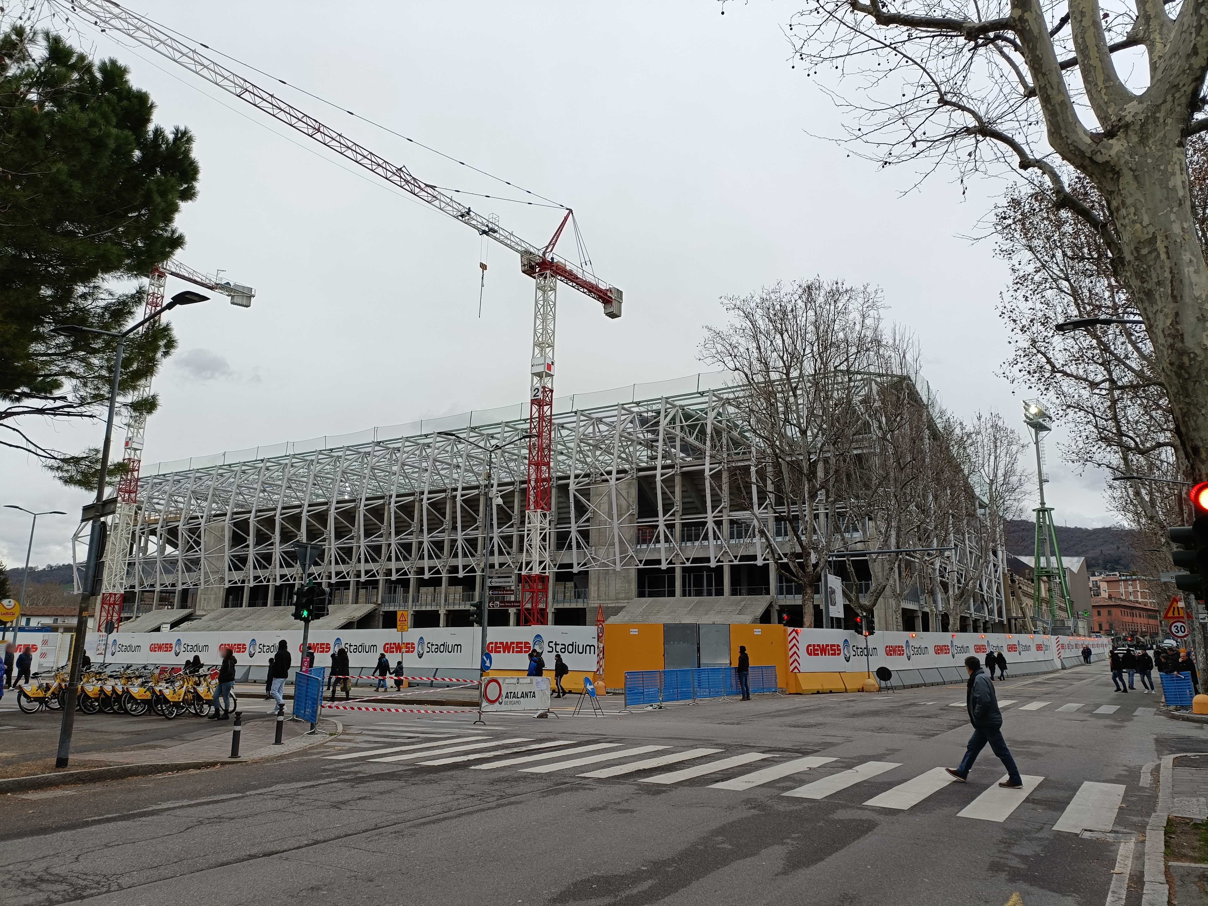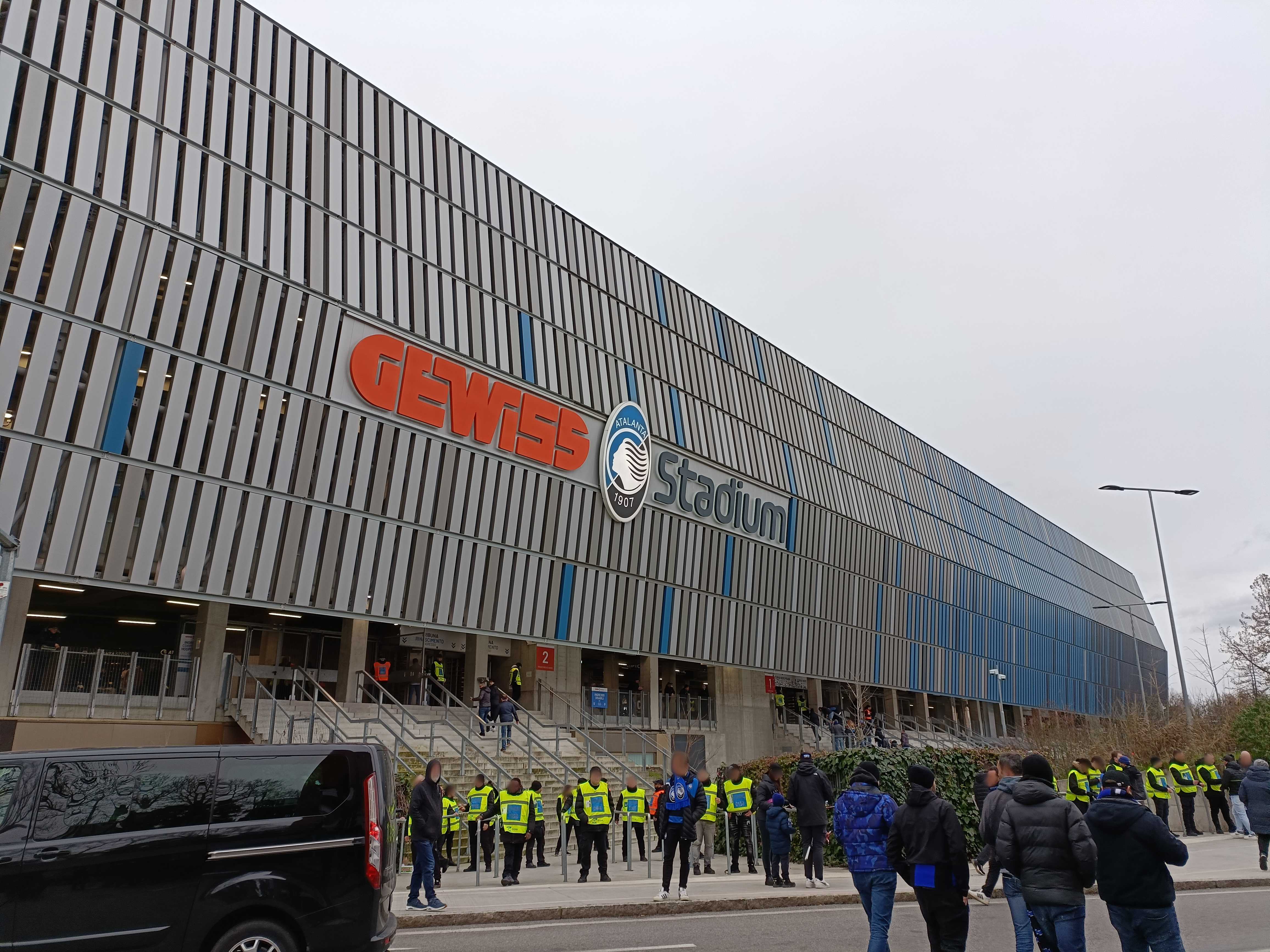 |  | | Tablica wskazująca kierunek na Gewiss Stadium | |