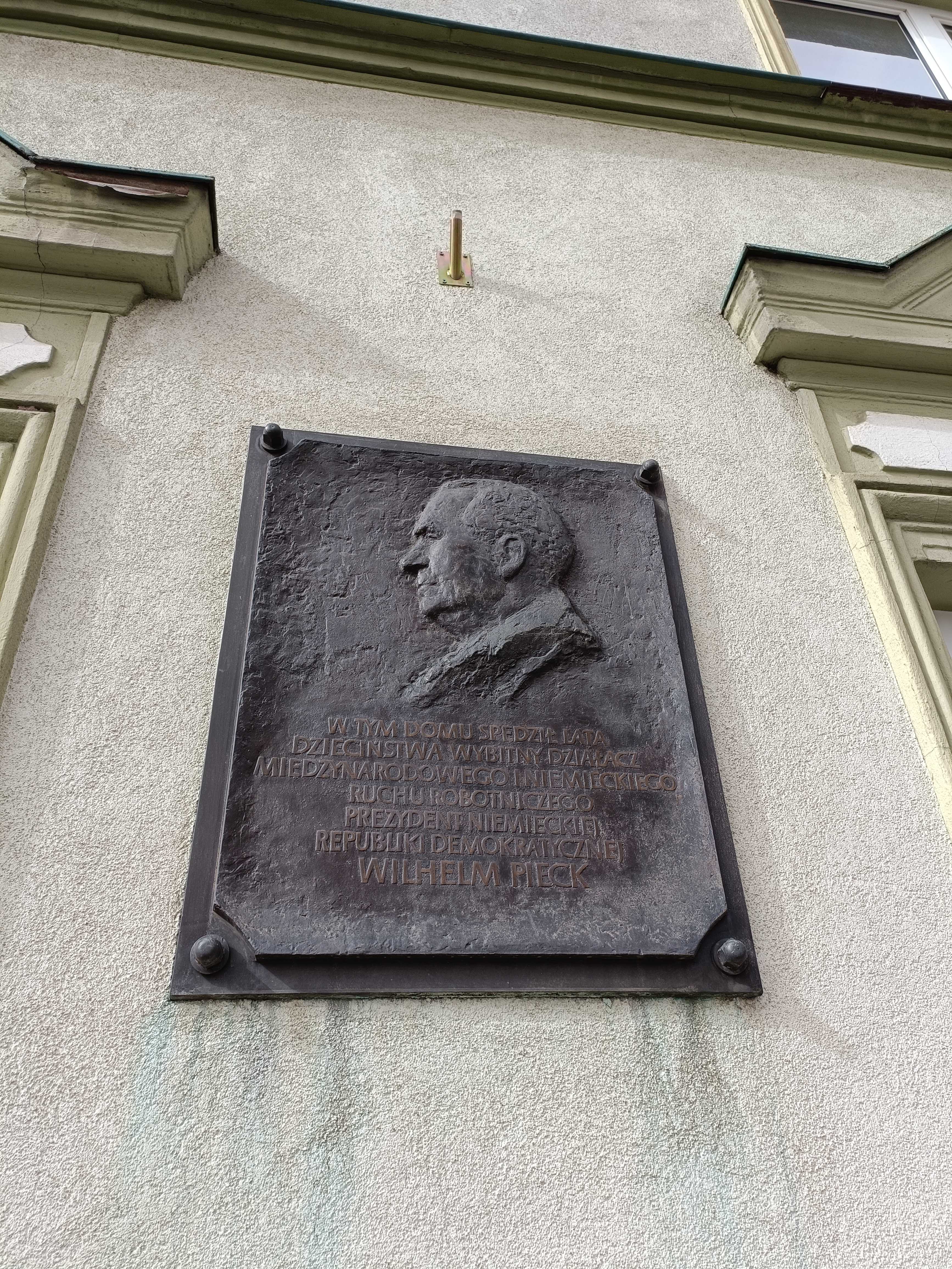 |  | | Tablica znajdująca się na domu, w którym urodził się jeden z założycieli SED oraz jedyny prezydent DDR, czyli Wilhelm Pieck | |