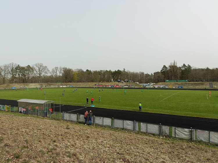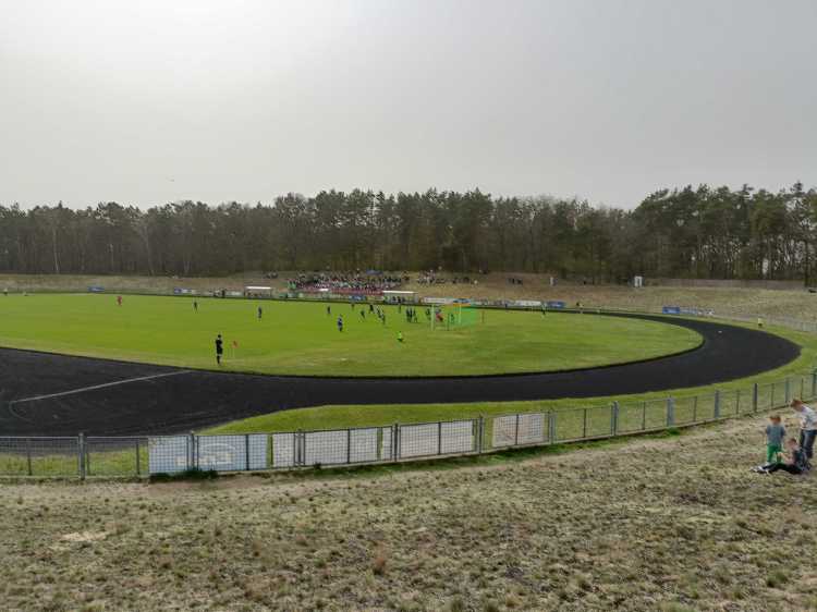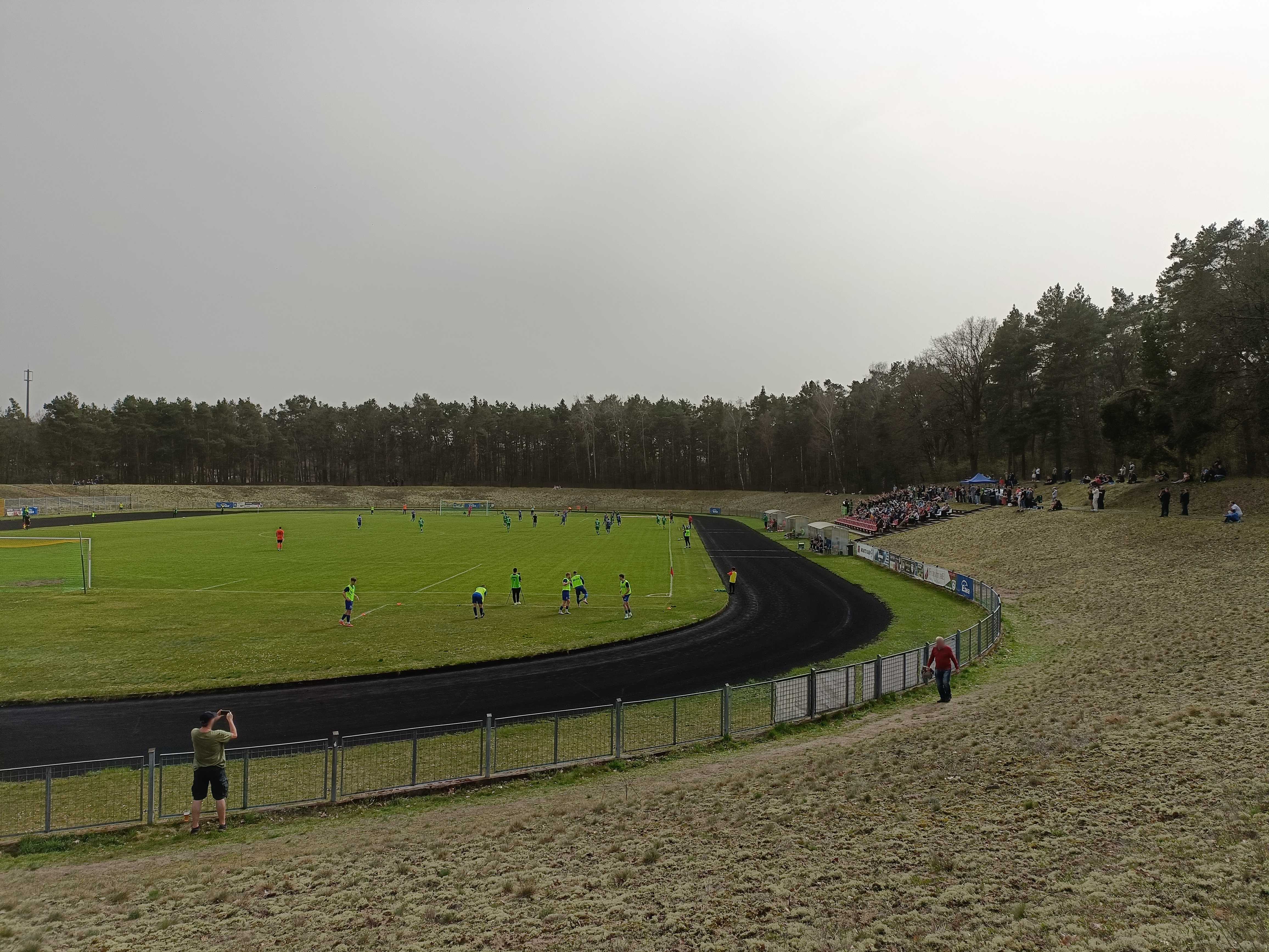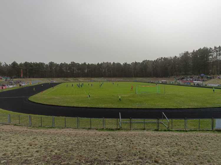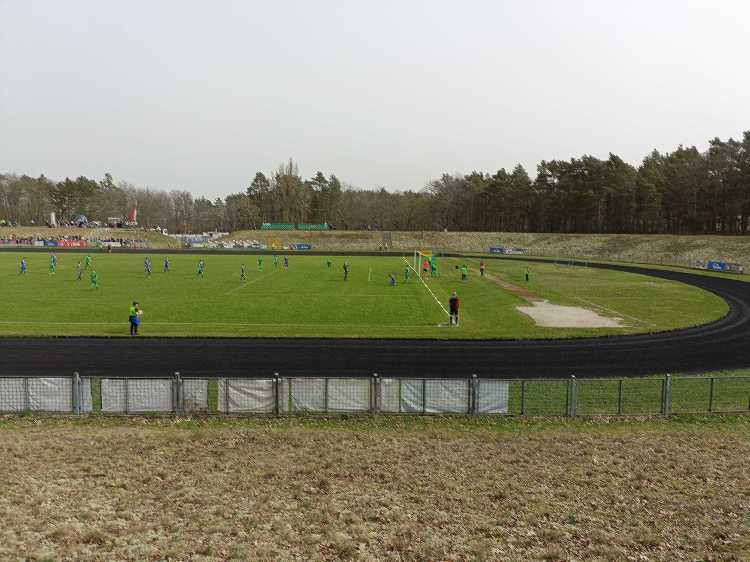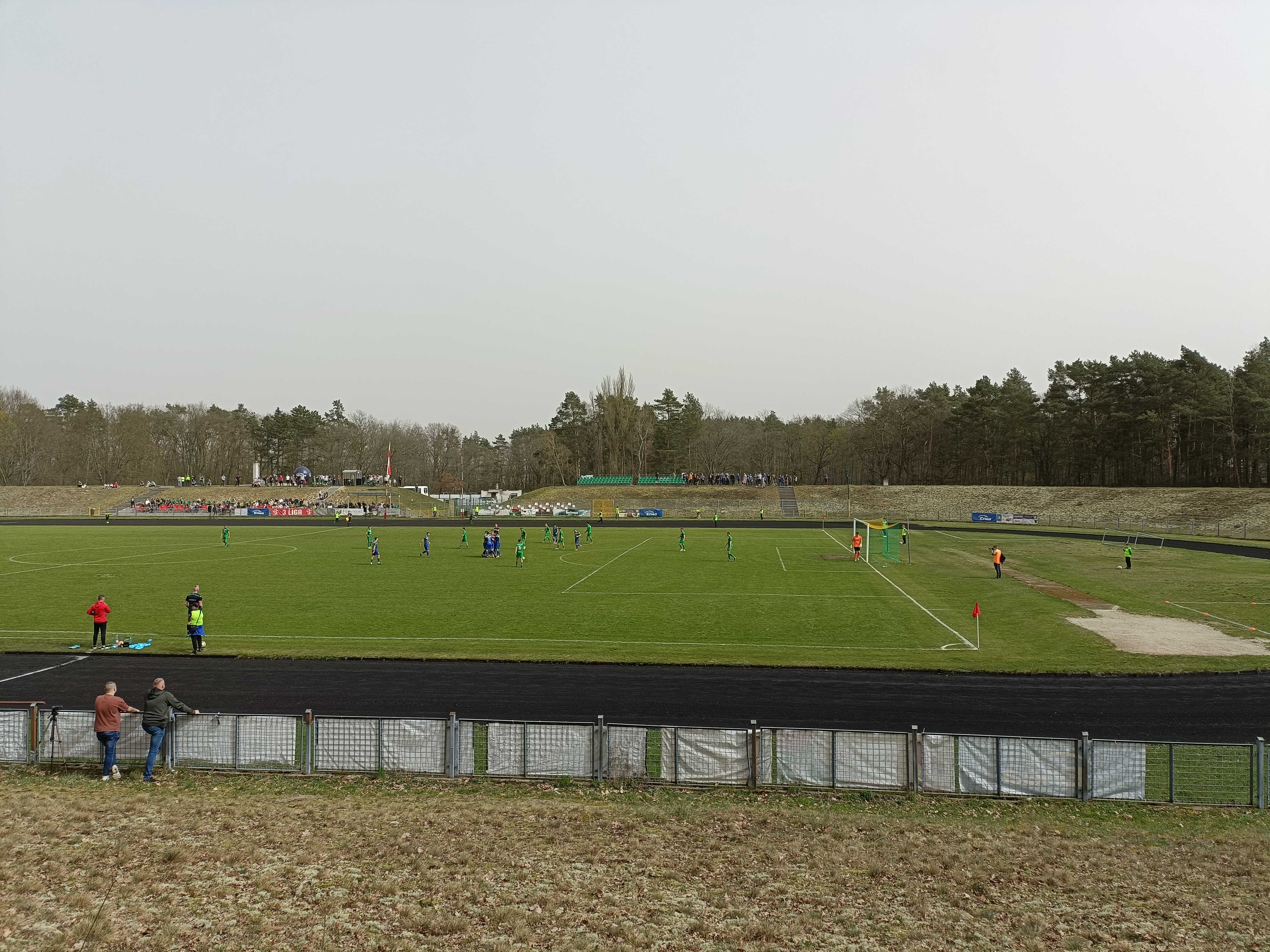 |  | | Widok z górnego wału po wschodniej stronie stadionu - jest cholernie daleko | |