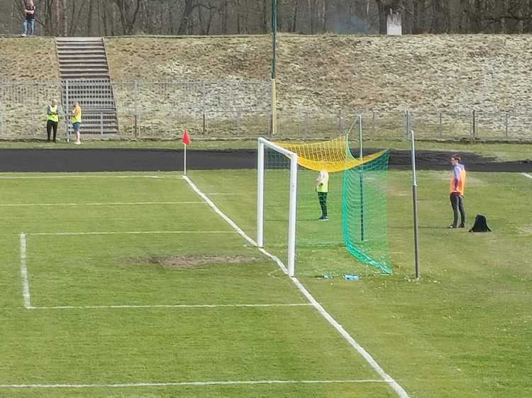 |  | | Pomimo znacznej odległości trybun od boiska, dojrzałem, że z linią bramkową było coś nie tak | |
