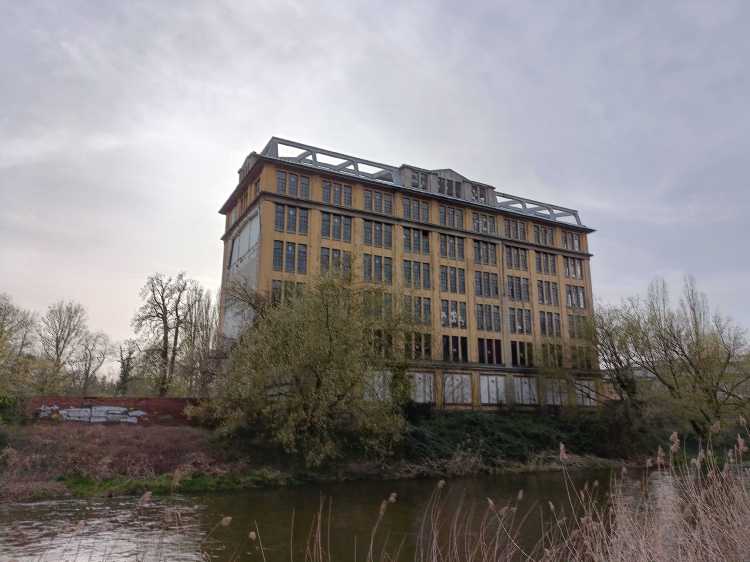 |  | | Wycieczka śladami DDR-u - opuszczony budynek VEB Gubener Wolle (zdjęcie robione jeszcze z polskiej strony) | |