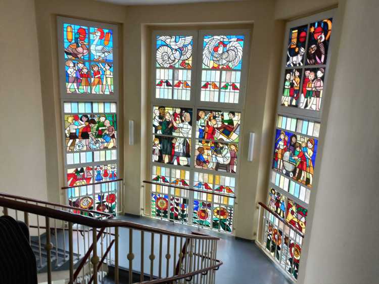 |  | | Przepiękny witraż, który łączy w sobie funkcje estetyczne i propagandowe | |