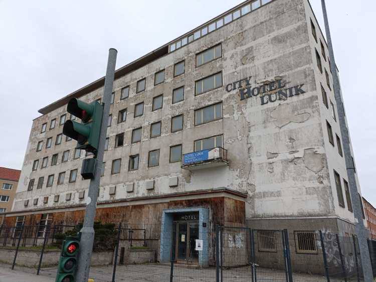 |  | | Hotel Lunik, jedno z najbardziej charakterystycznych miejsc w Eisen - obecnie niestety w takim samym stanie jak dzielnica Lunik IX w Koszycach | |
