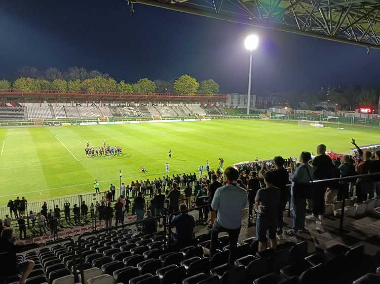 |  | | Piłka na połowie Resovii, przy piłce Michał Gliwa (dawny bramkarz Polonii) | |