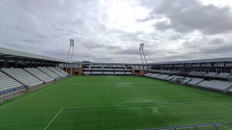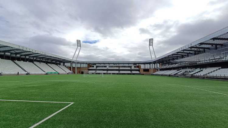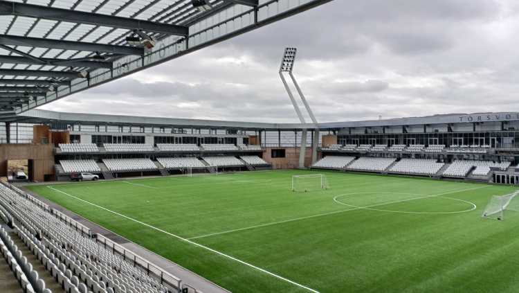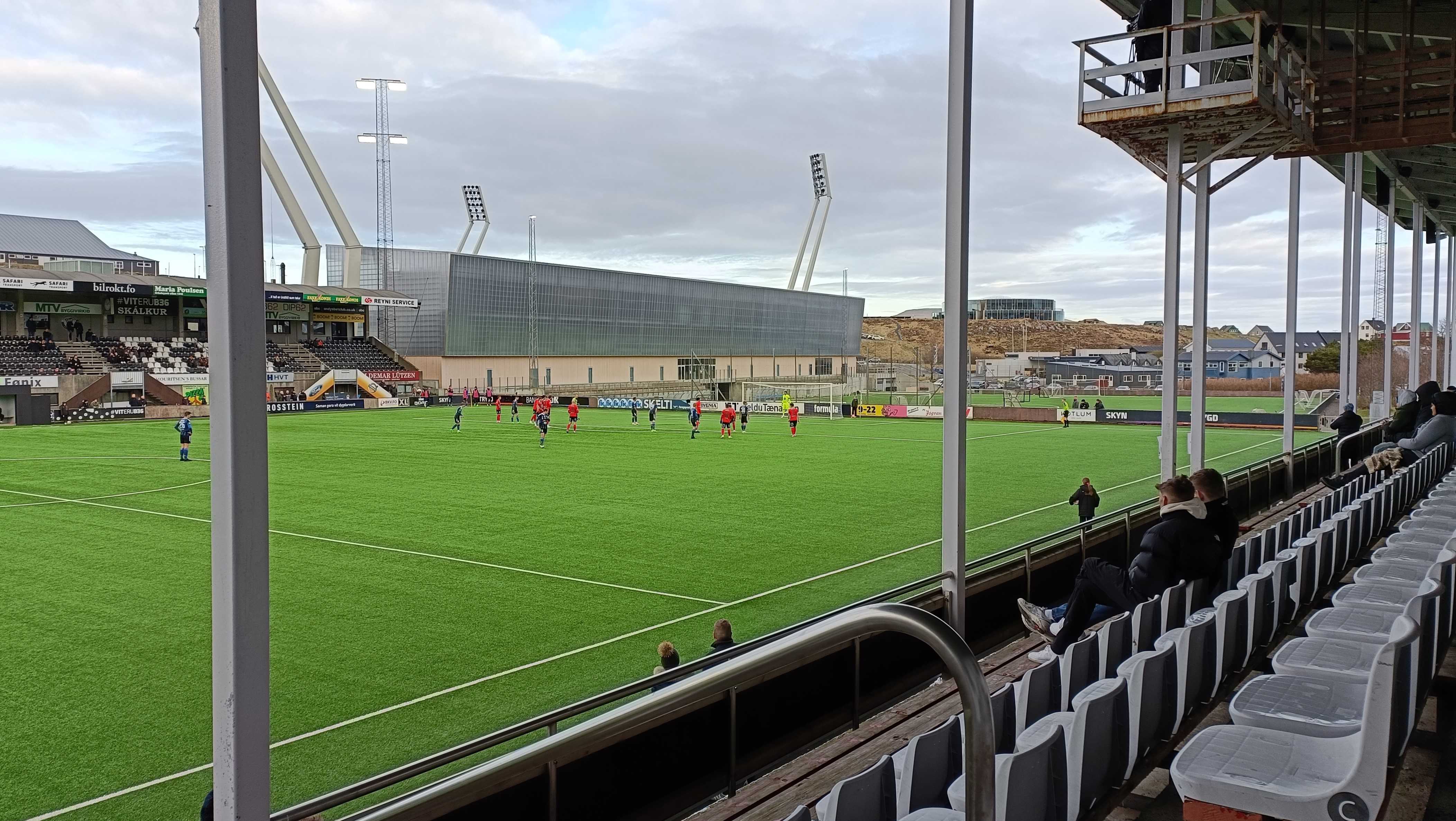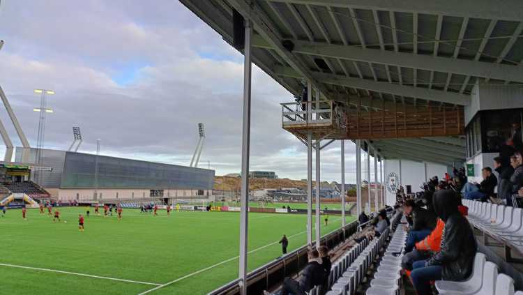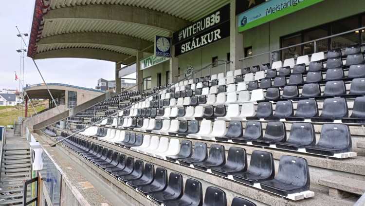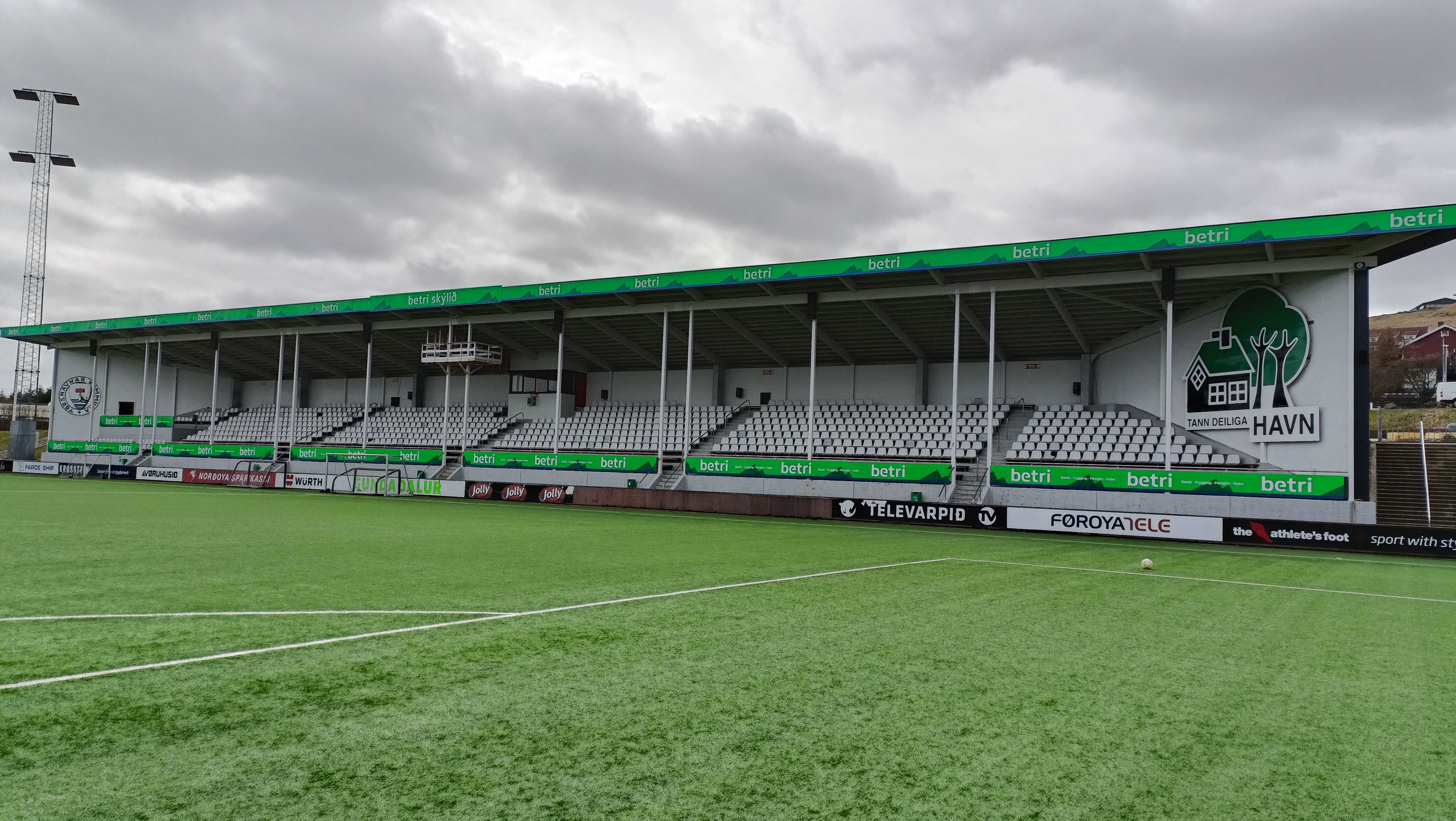 |  | | Po wschodniej stronie stadionu znajdują się dwie trybunki, jedna należy do HB, druga do B36 | |