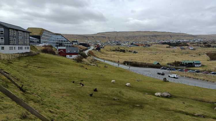 |  | | Absurdalny widok - na pierwszym planie srają owce, a w tle znajduje się hotel Hilton... kryty darnią | |