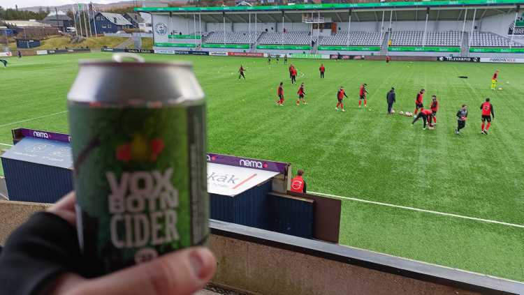 |  | | Rozgrzewka na boisku i na trybunach (co ciekawe, cydr jest farerski, choć na wyspach chyba nie rosną żadne drzewka owocowe) | |