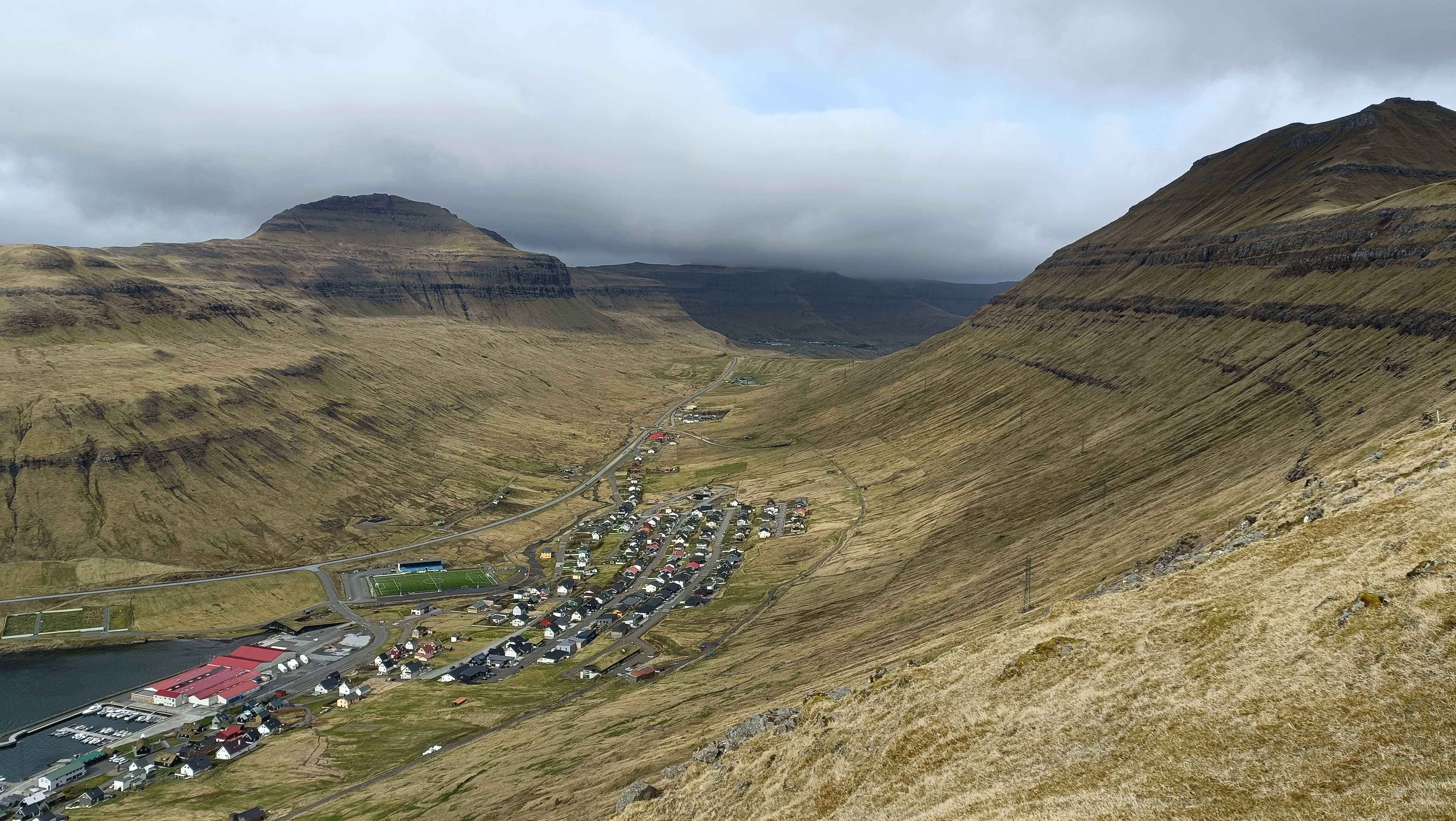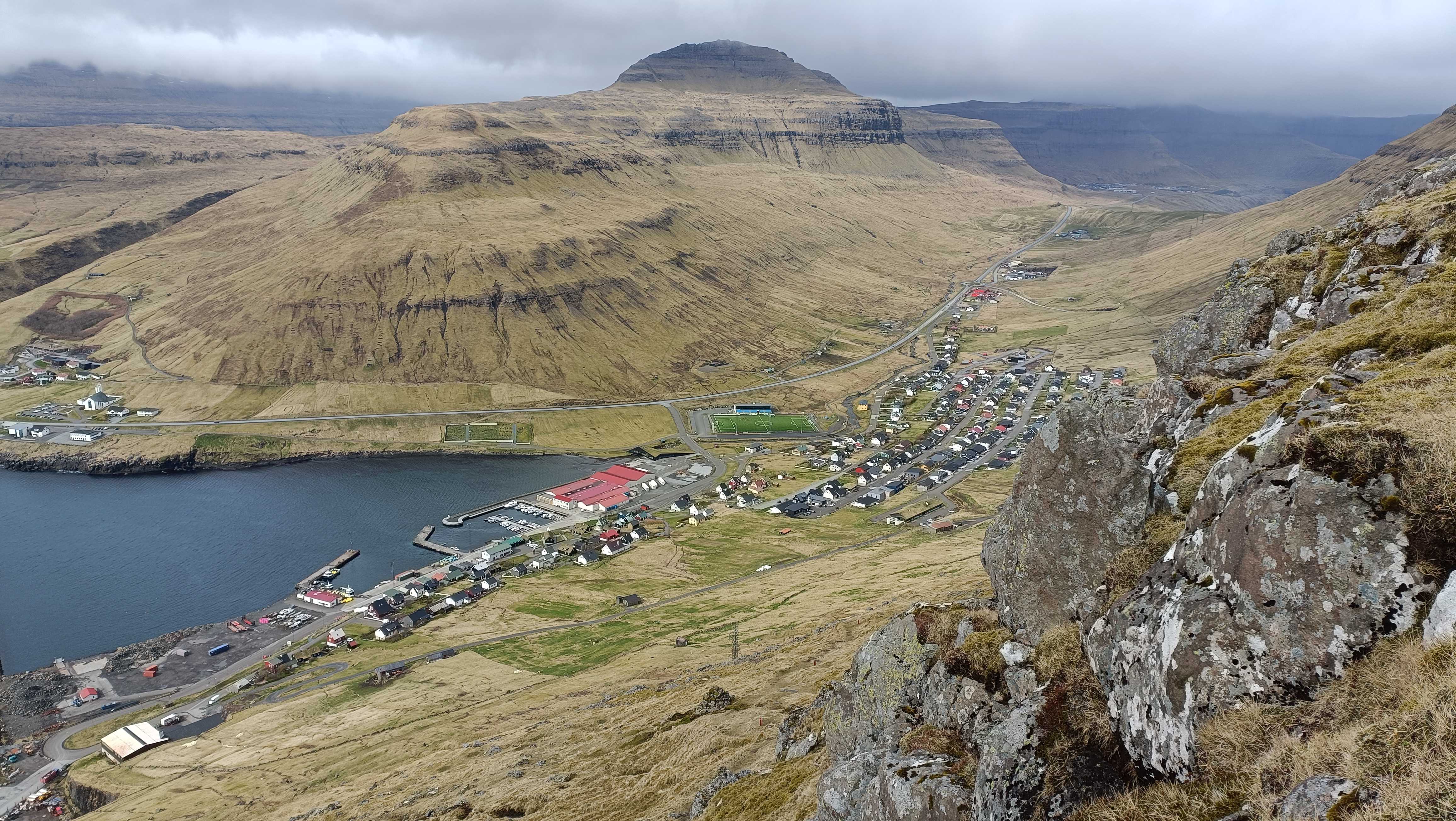 |  | | Widok ze szlaku na Knukur na Leirvik oraz stadion | |