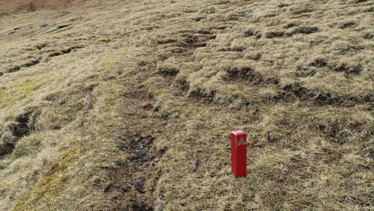 |  | | Przyjęło się, że szlaki górskie oznaczane są kupkami kamieni - w tym przypadku nie było wystarczająco dużo kamieni, więc postawiono słupki ze stosownym symbolem | |