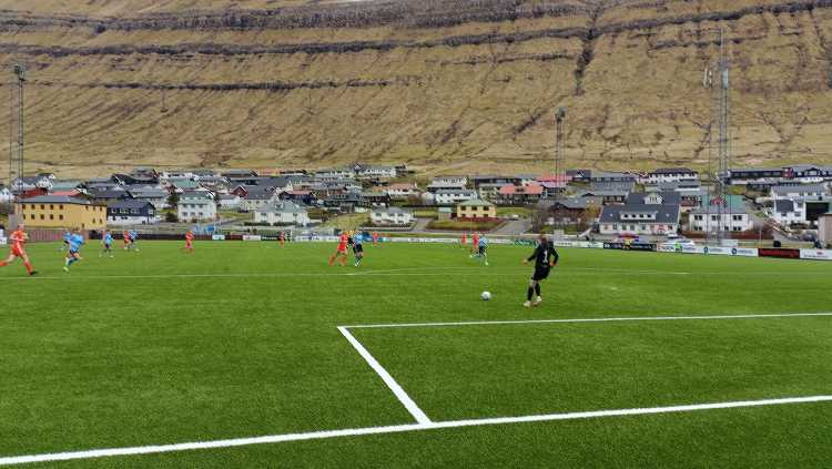 |  | | Piłka na połowie Vikingura | |
