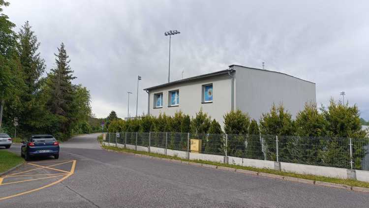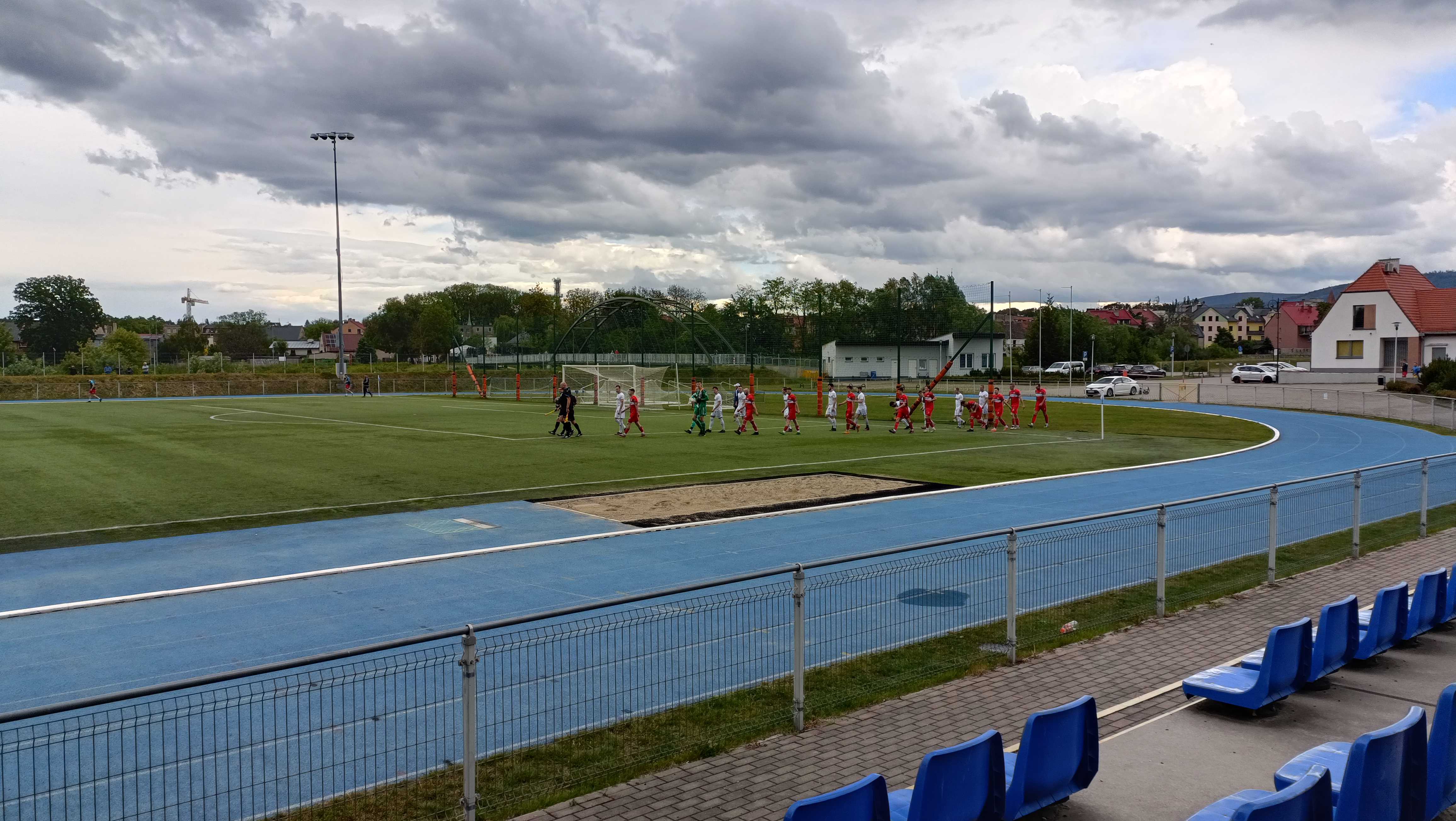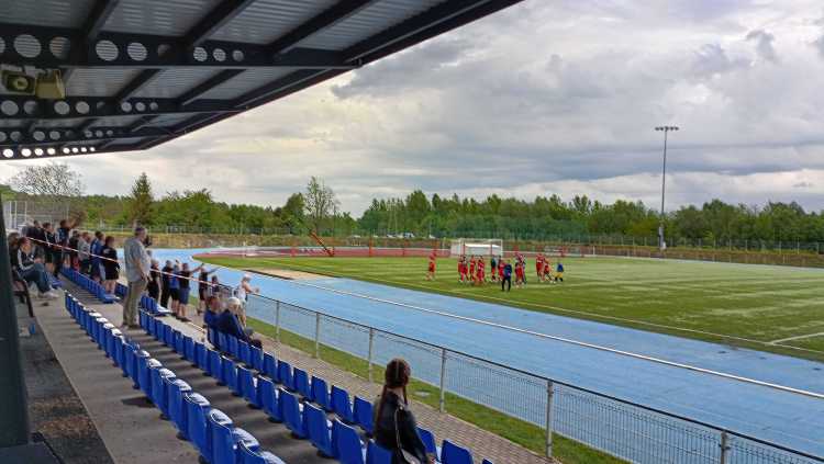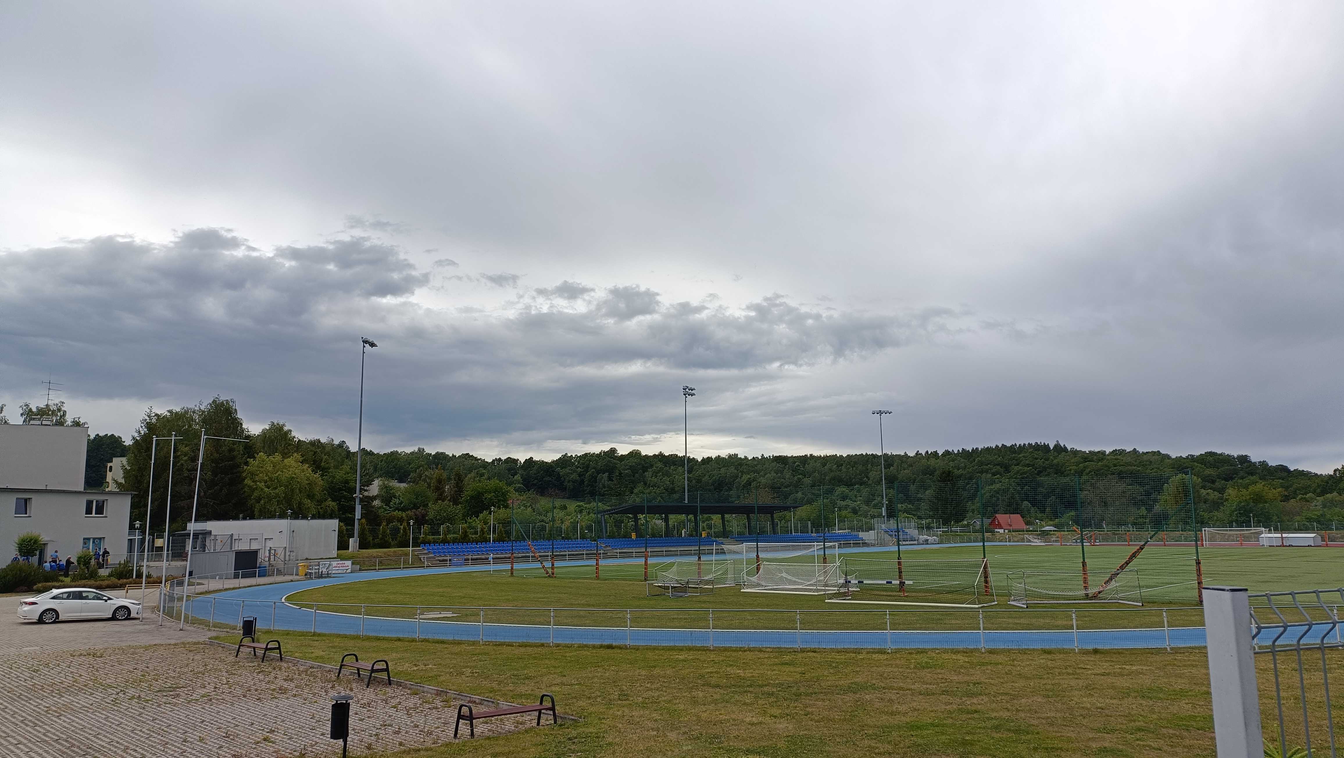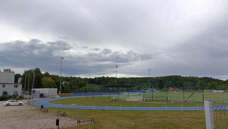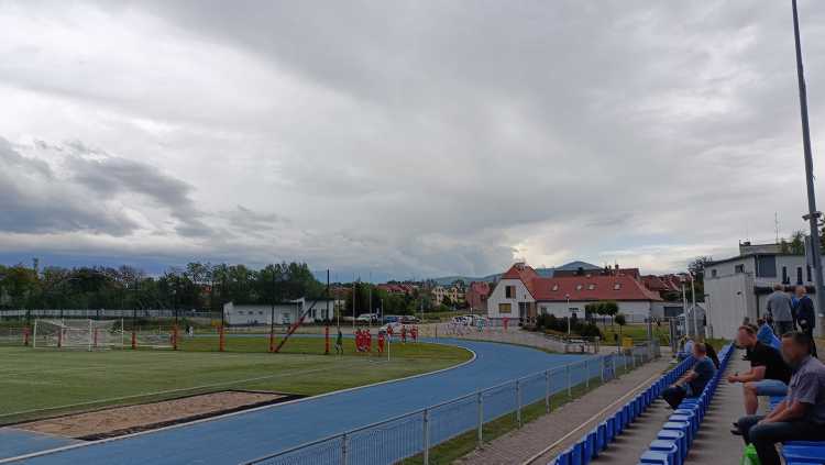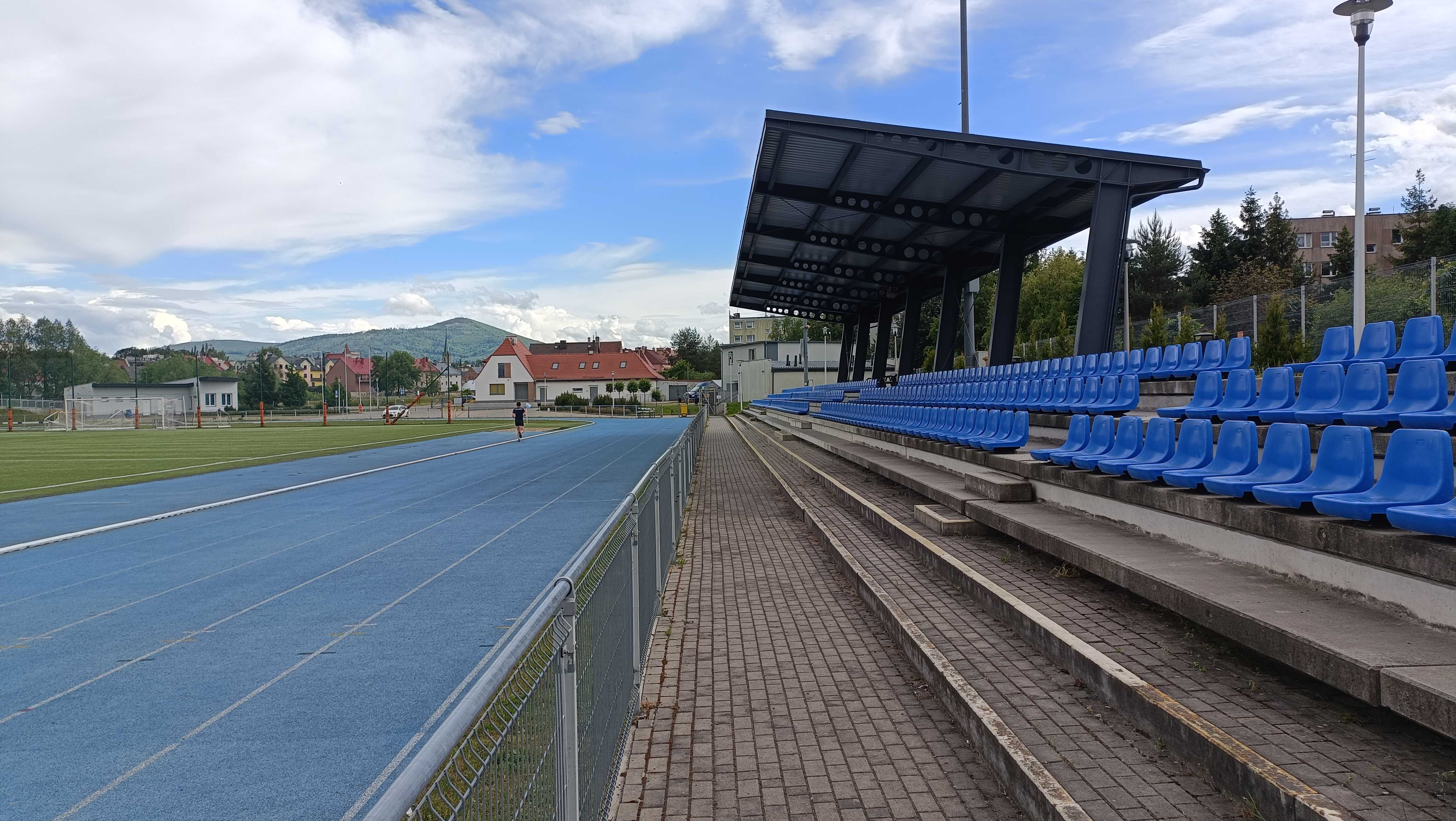 |  | | Zachodnia (i jedyna) trybuna Stadionu Miejskiego w Głuchołazach | |