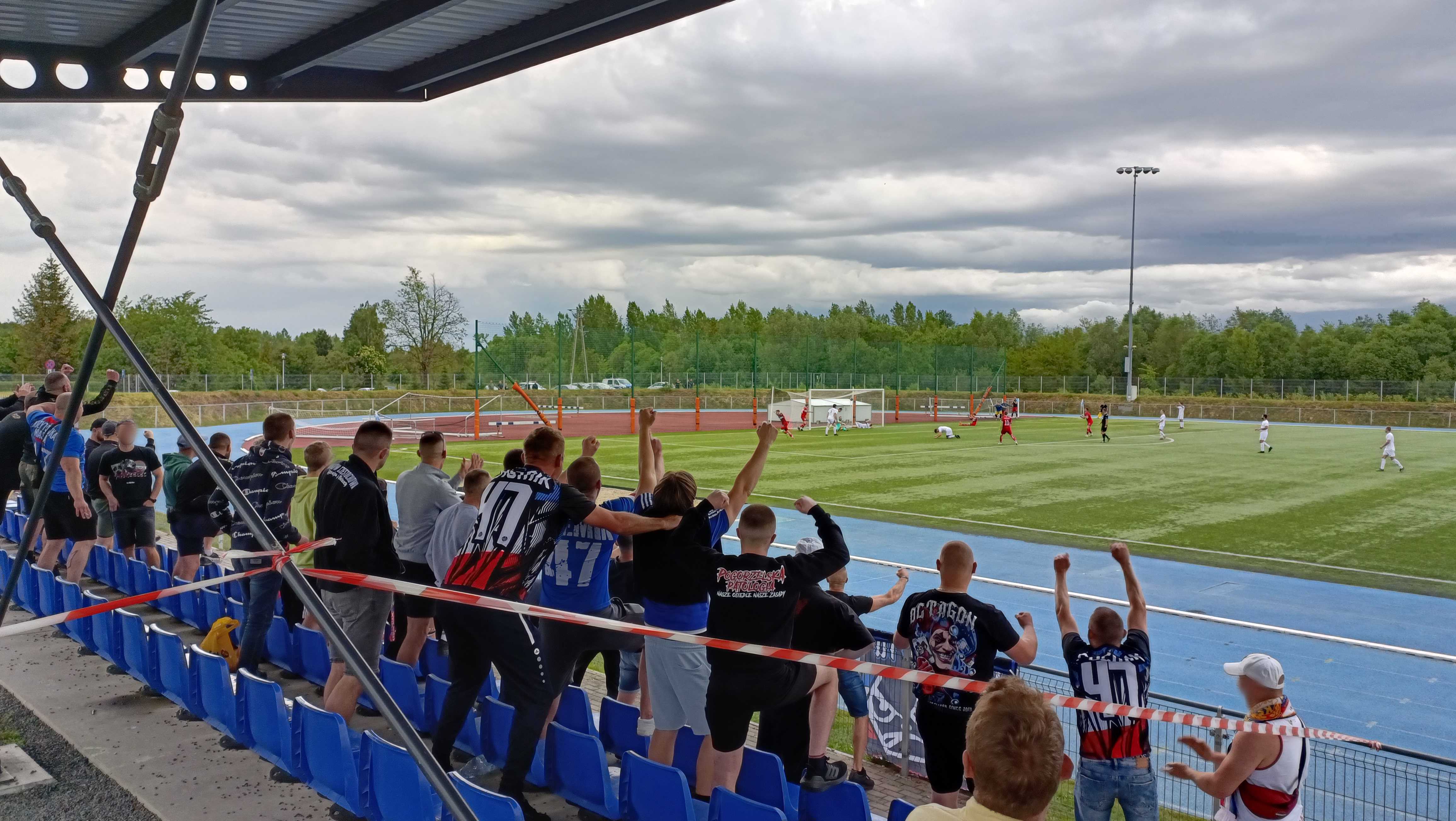 |  | | Kibice gości celebrują gola na 1:1 | |
