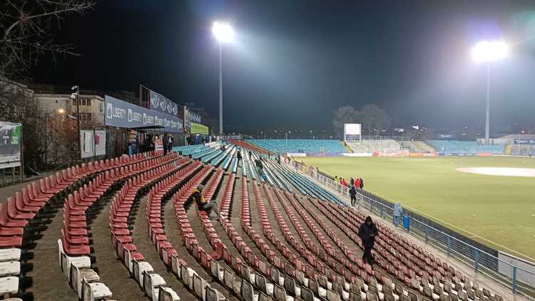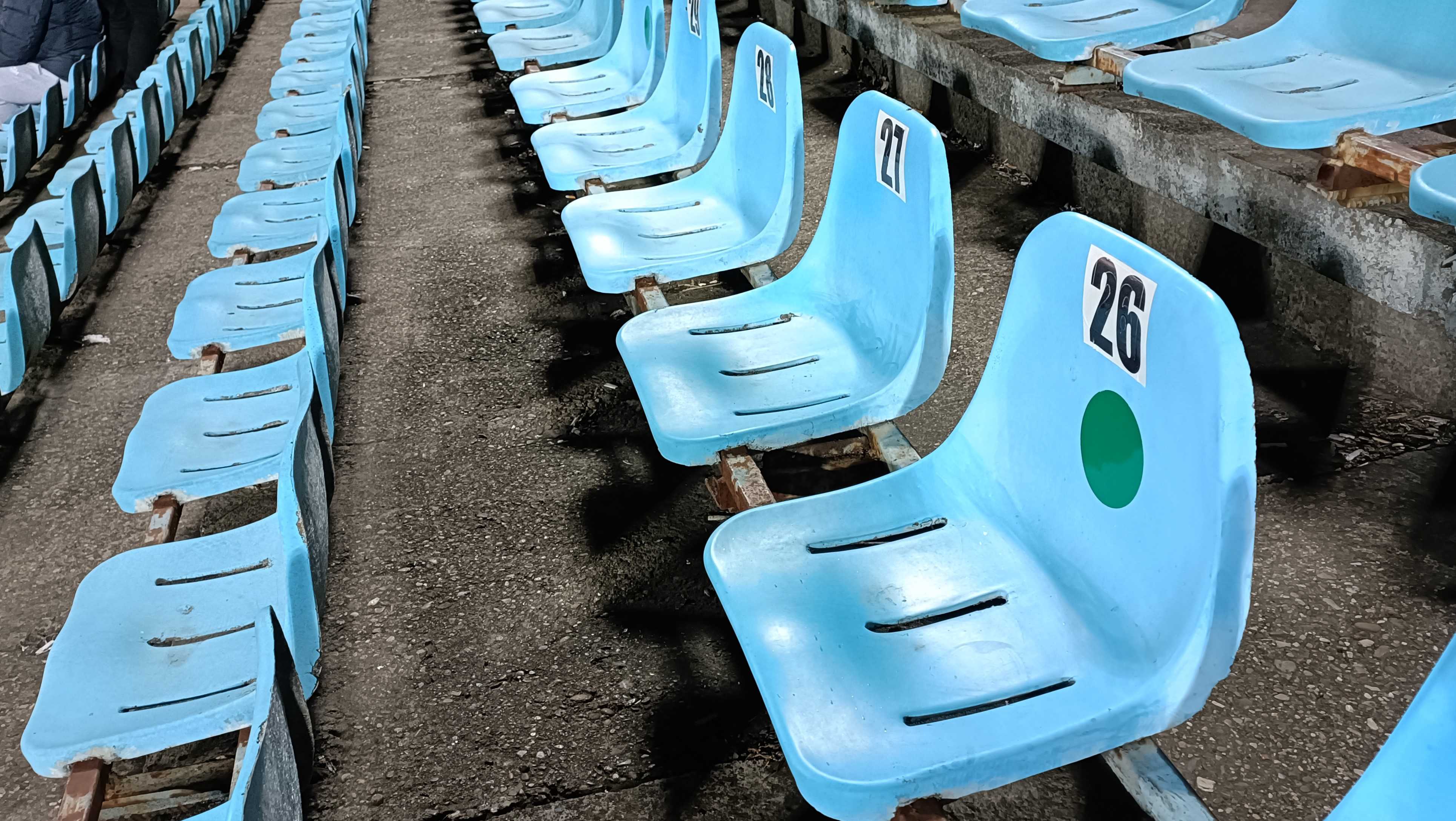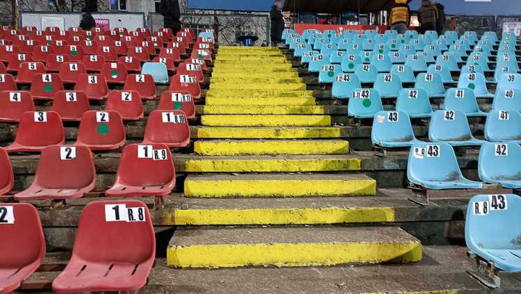 |  | | Trybuna zachodnia - tak, ten budynek w centralnym miejscu to jedyne zadaszenie występujące na stadionie | |
