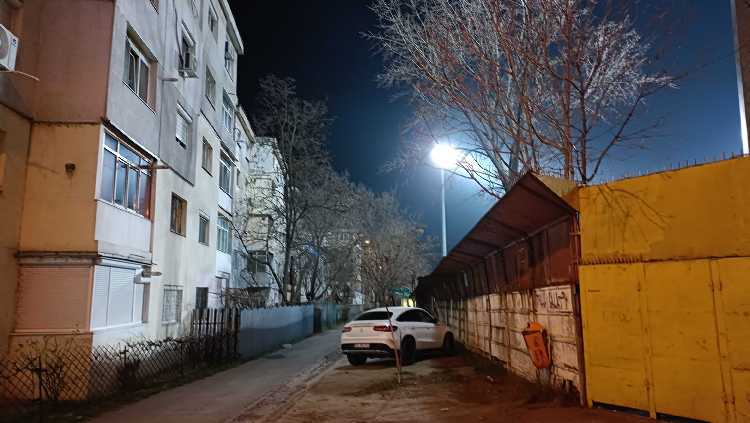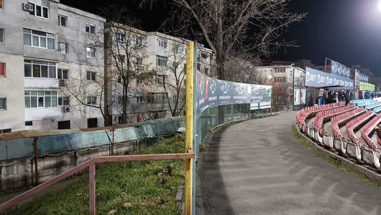 |  | | Odległość między wschodnim krańcem stadionu a blokami jest minimalna | |