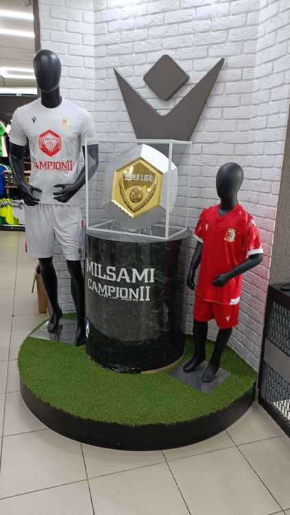 |  | | Wystawka w sklepie Macron ze strojami aktualnego Mistrza Mołdawii (Milsami Orhei) | |