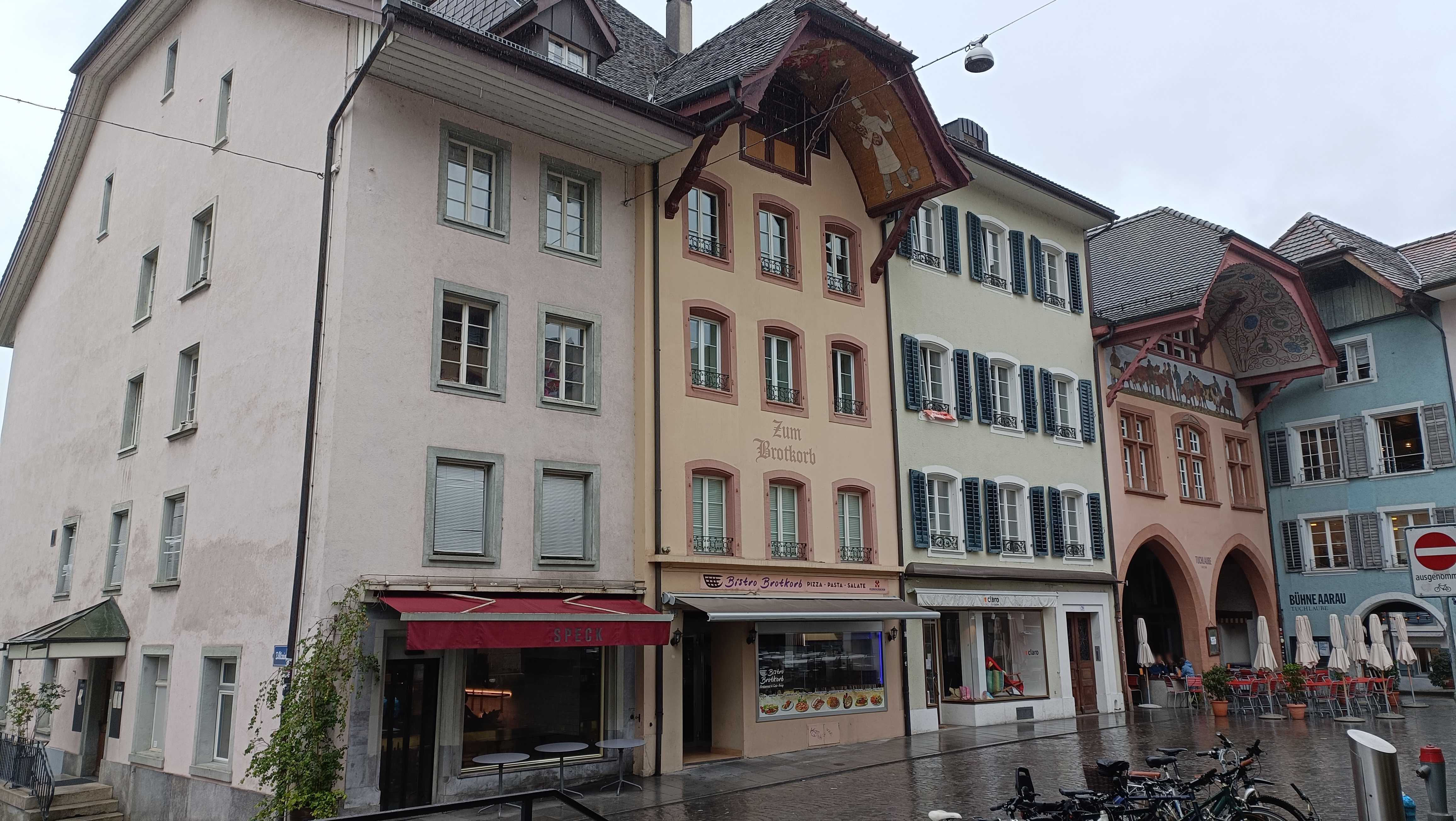 |  | | Dalej Aarau (i charakterystyczne dachy nad kamienicami) | |